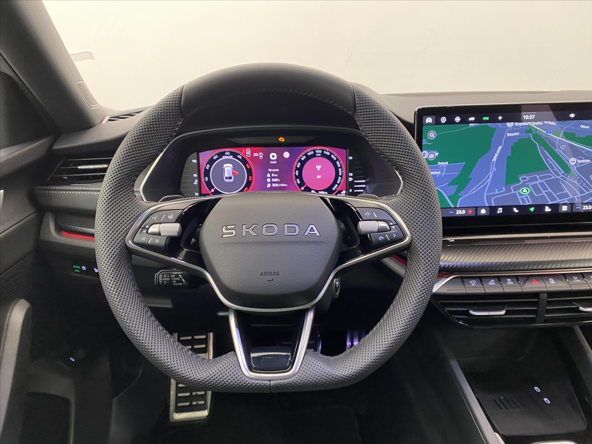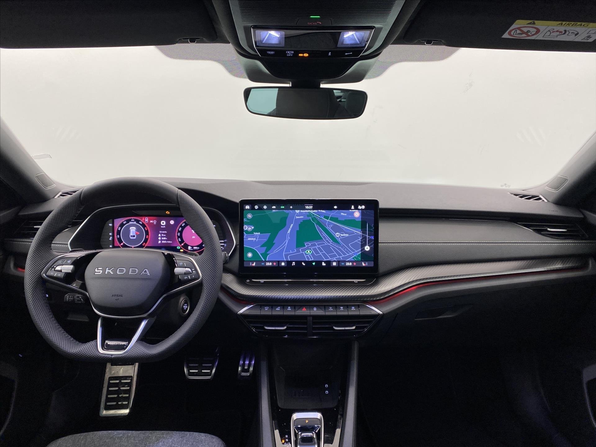 | Vnitřní výbava a komfort | Ambientní LED osvětlení interiéru, Klimatizace aut. , Bezklíčkové ovládání, Deaktivace airbagu spolujezdce, Klimatizace dvouzónová, El. sklopná zrcátka, El. parkovací brzda, Klimatizovaná přihrádka, Multifunkční volant, Nastavitelný volant, Posilovač řízení, Senzor stěračů, Senzor tlaku v pneumatikách, Venkovní teploměr, Vyhřívaná zrcátka, Vyhřívané čelní sklo, Vyhřívaný volant, Pádla řazení na volantu |