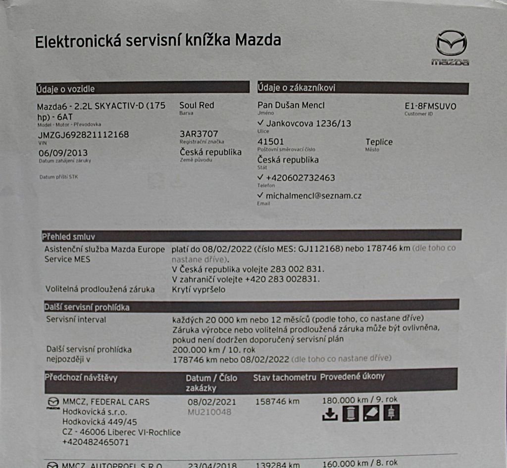 - Servisní knížka