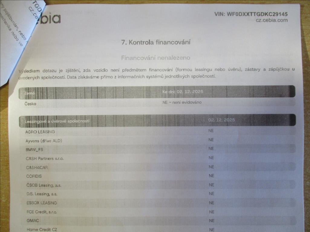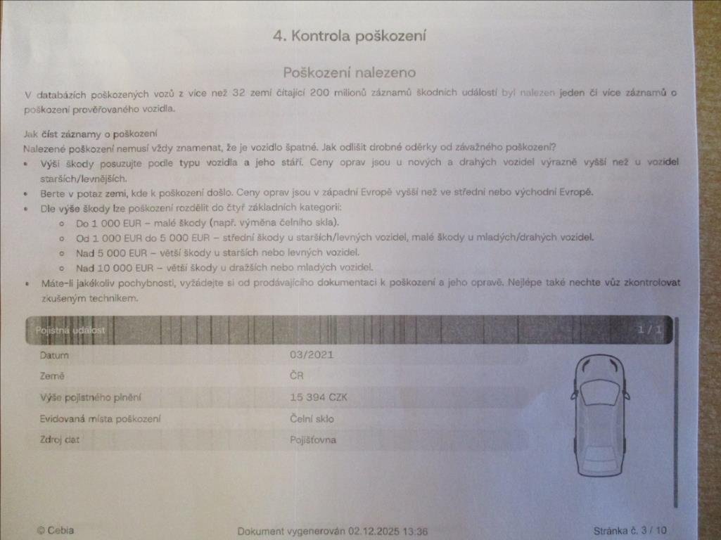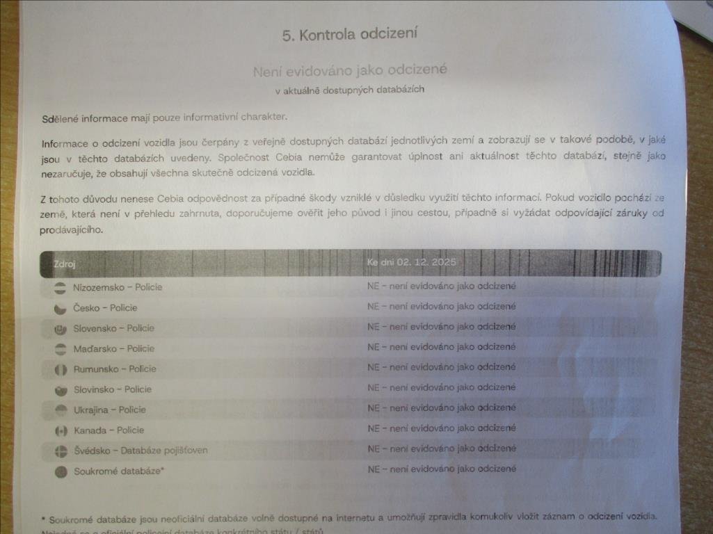 První majitel; Úvěr možný; Nehavarováno; Protokol Cebia; Kompletní servisní historie v autorizovaném servisu