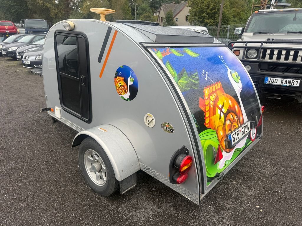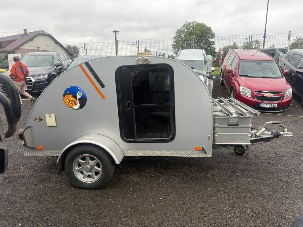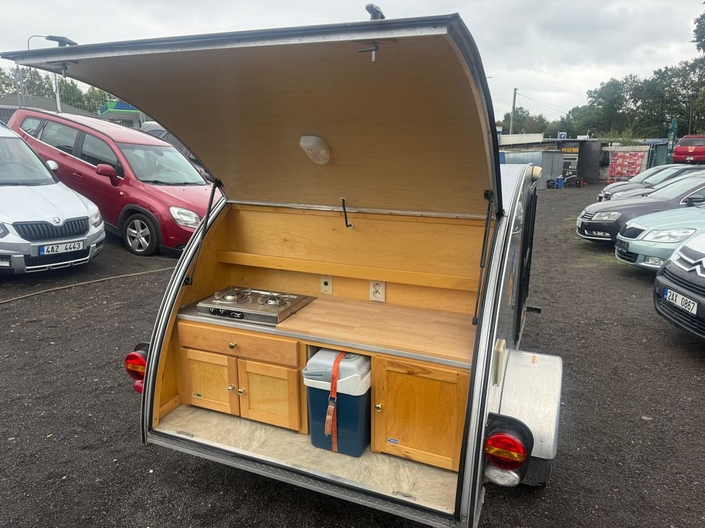 OBYTNÝ PŘÍVĚS-MALÝ KARAVAN PRO 2 OSOBY; KUCHYŃKA; SOLAR; 220V; 12 V; LEDNIČKA MRAŽÁK; STŘEŠNÍ OKNO S VĚTRÁKEM; NEZÁVISLÉ TOPENÍ; ULOŽNÝ BOX; DRŽÁK NA KOLA; PŘÍVĚS JE BRŽDĚNÝ; VSTUP ZE DVOU STRAN POHODLNÁ POSTEL PRO DVA 185X140 CM; ALU KOLA; PŘEDSTAN MĚ STAL DESITEČKU JE TO RARITKA KDYŽ S TIM NĚKAM POJEDEŠ UVIDIŠ JAK LIDI BUDOU PALCOVAT :)