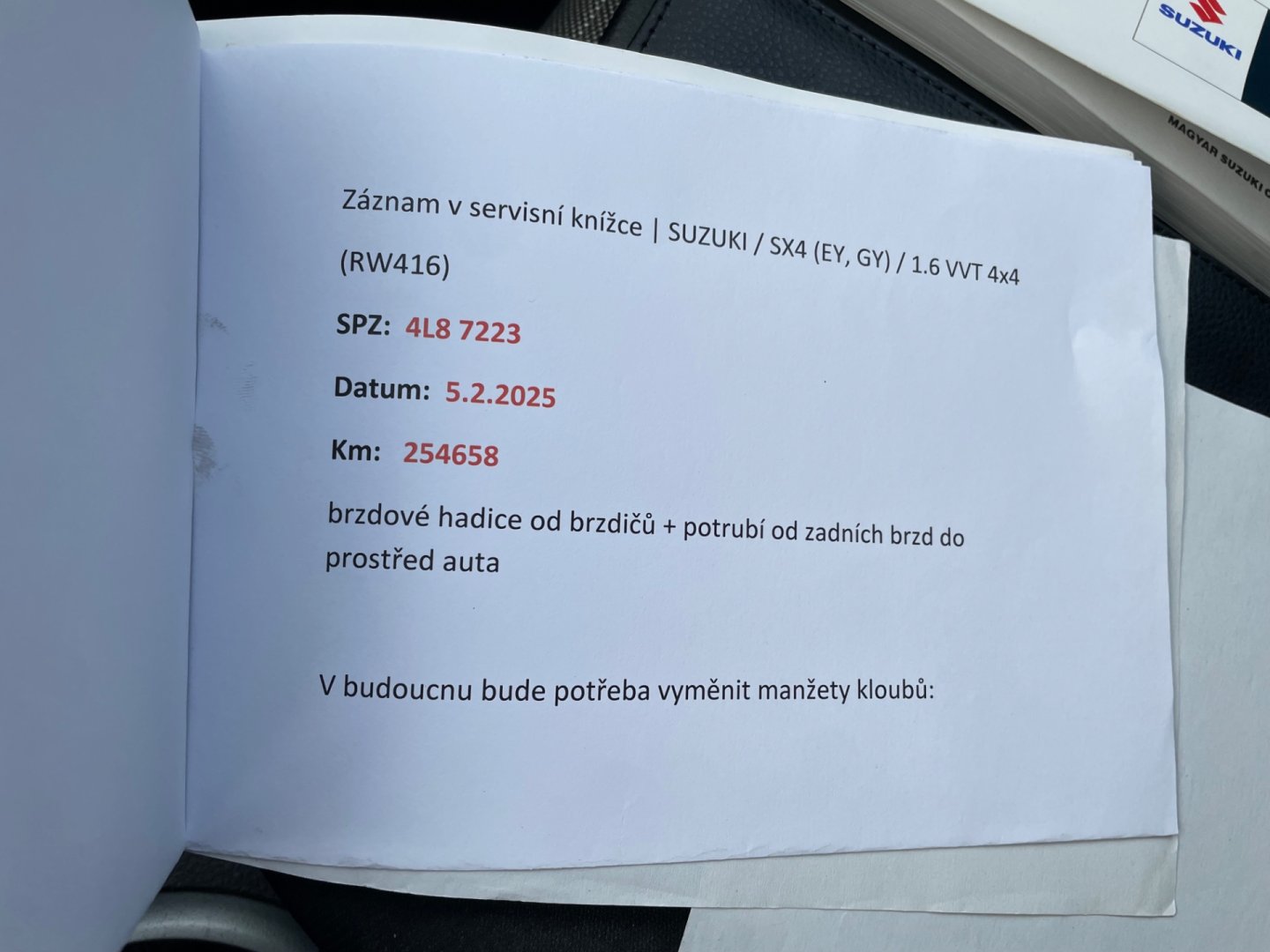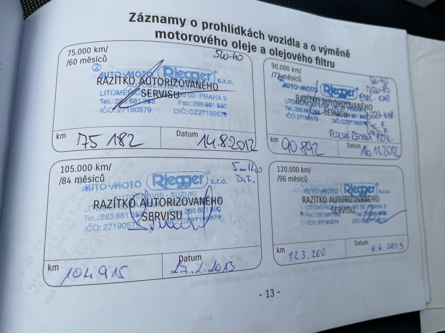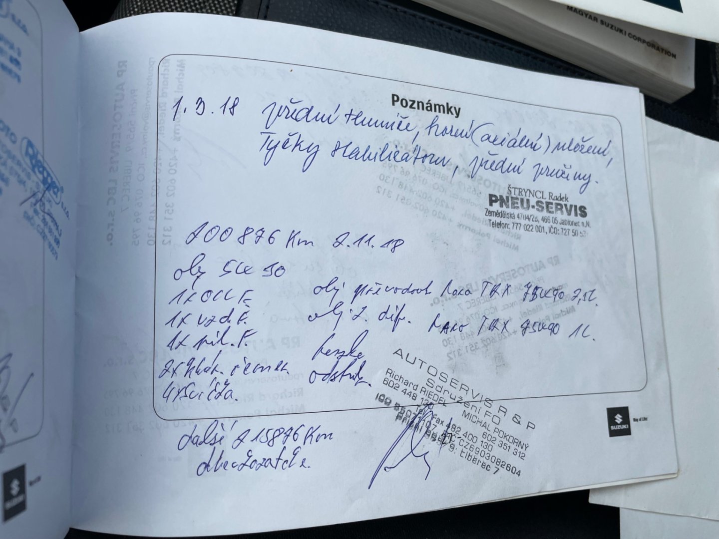 - Servisní knížka