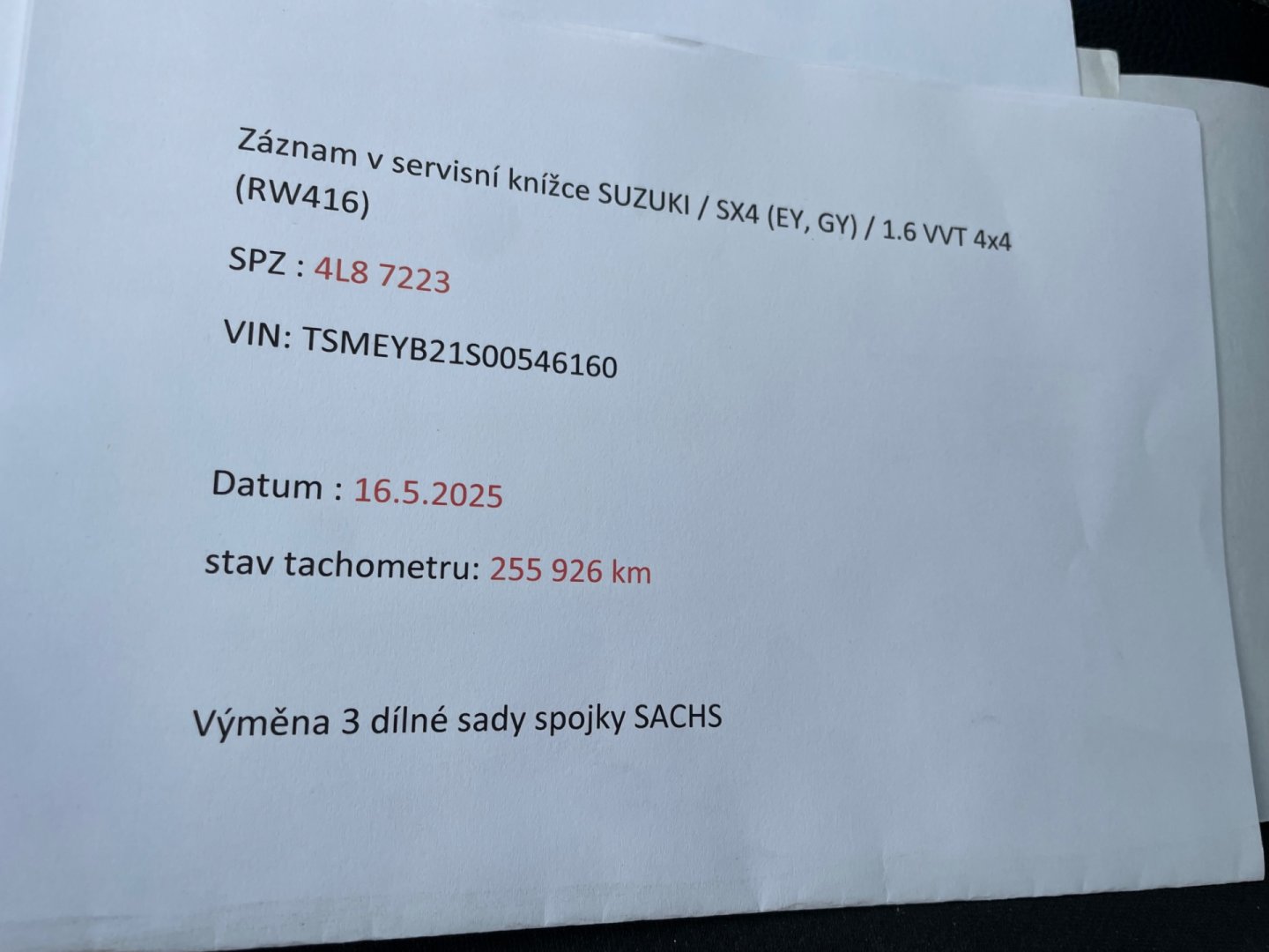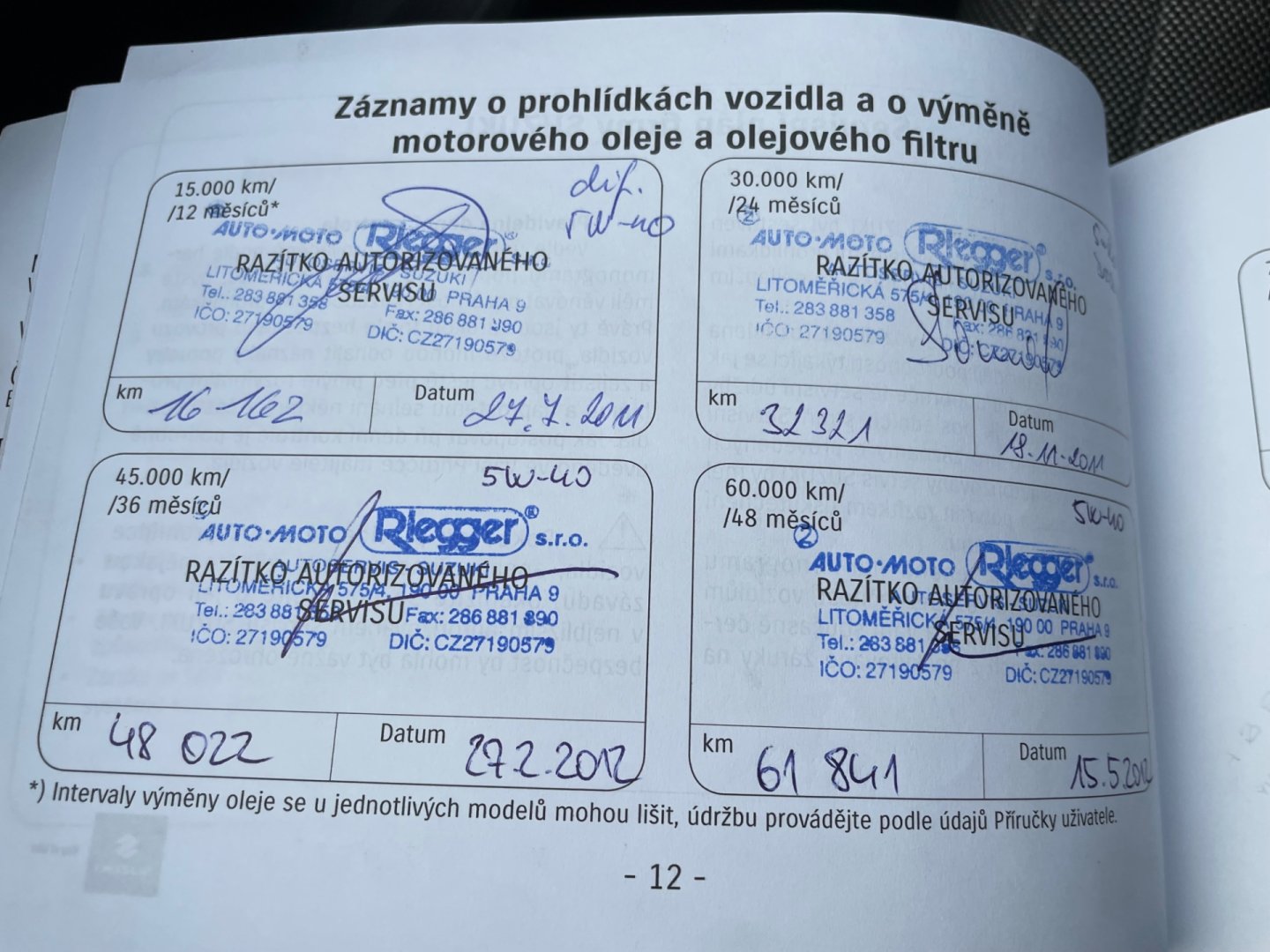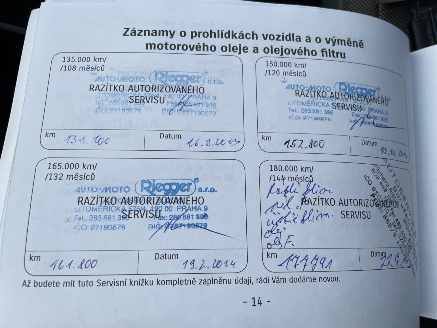 - Servisní knížka