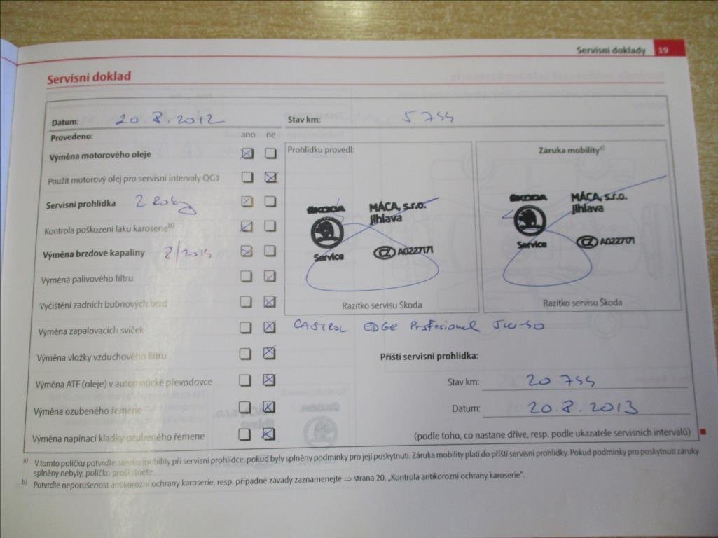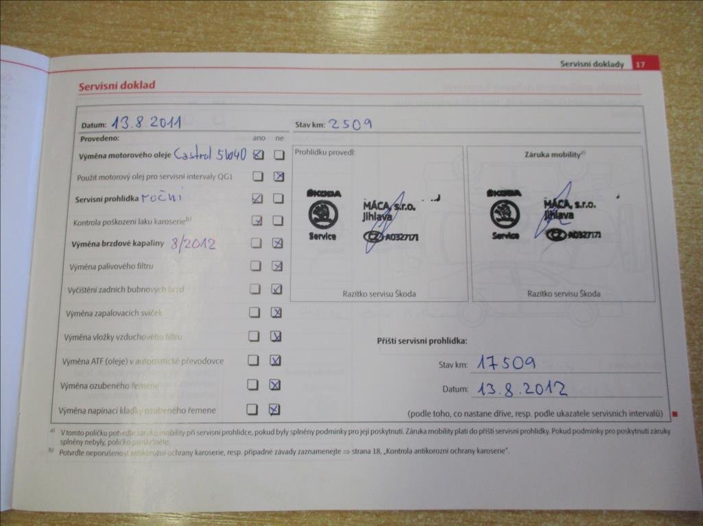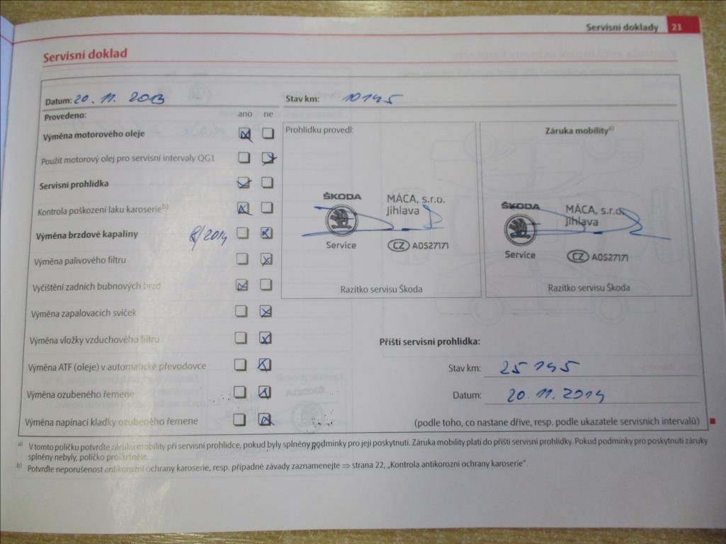 - Servisní knížka
