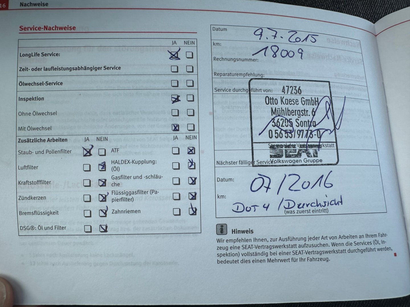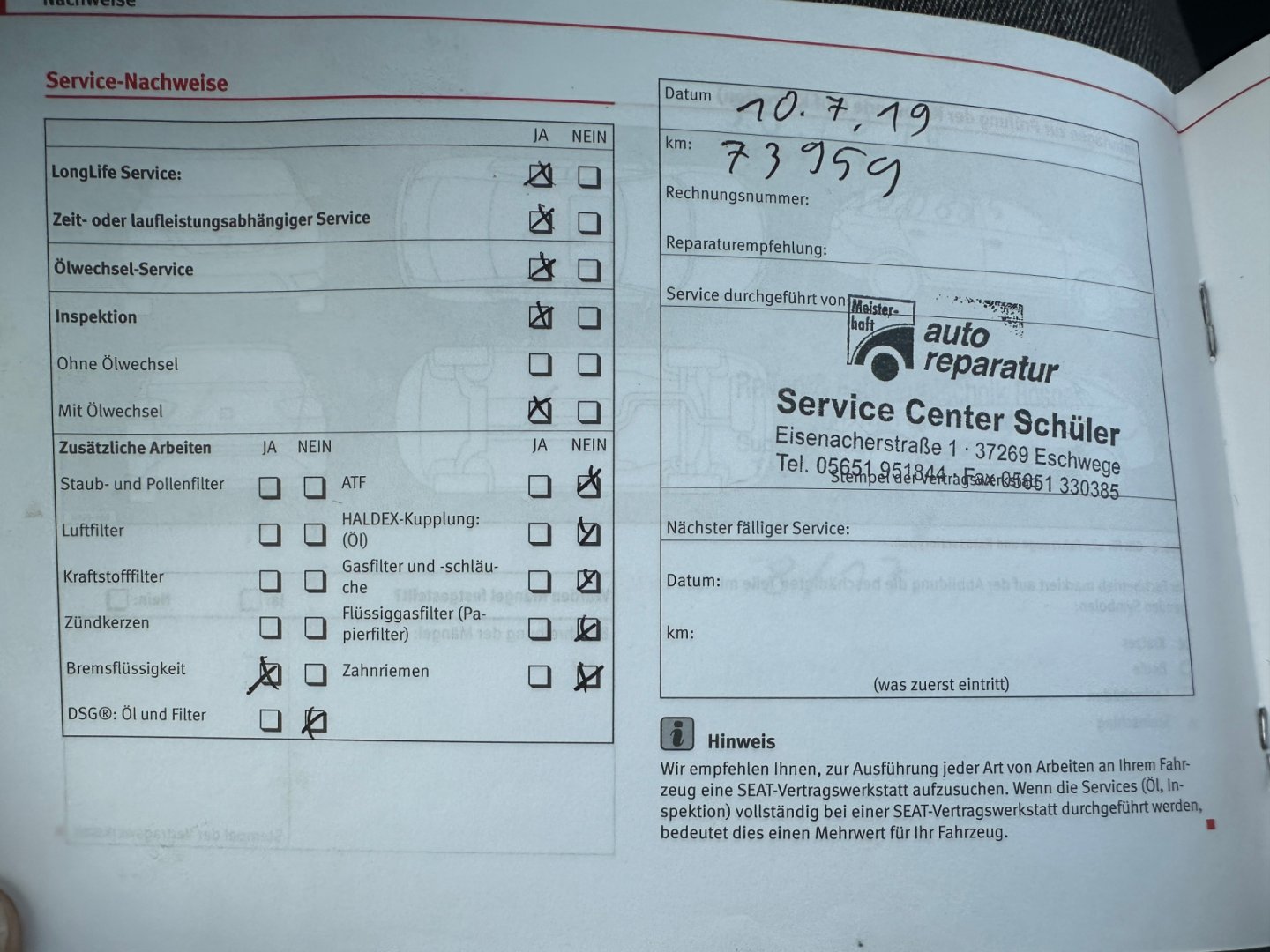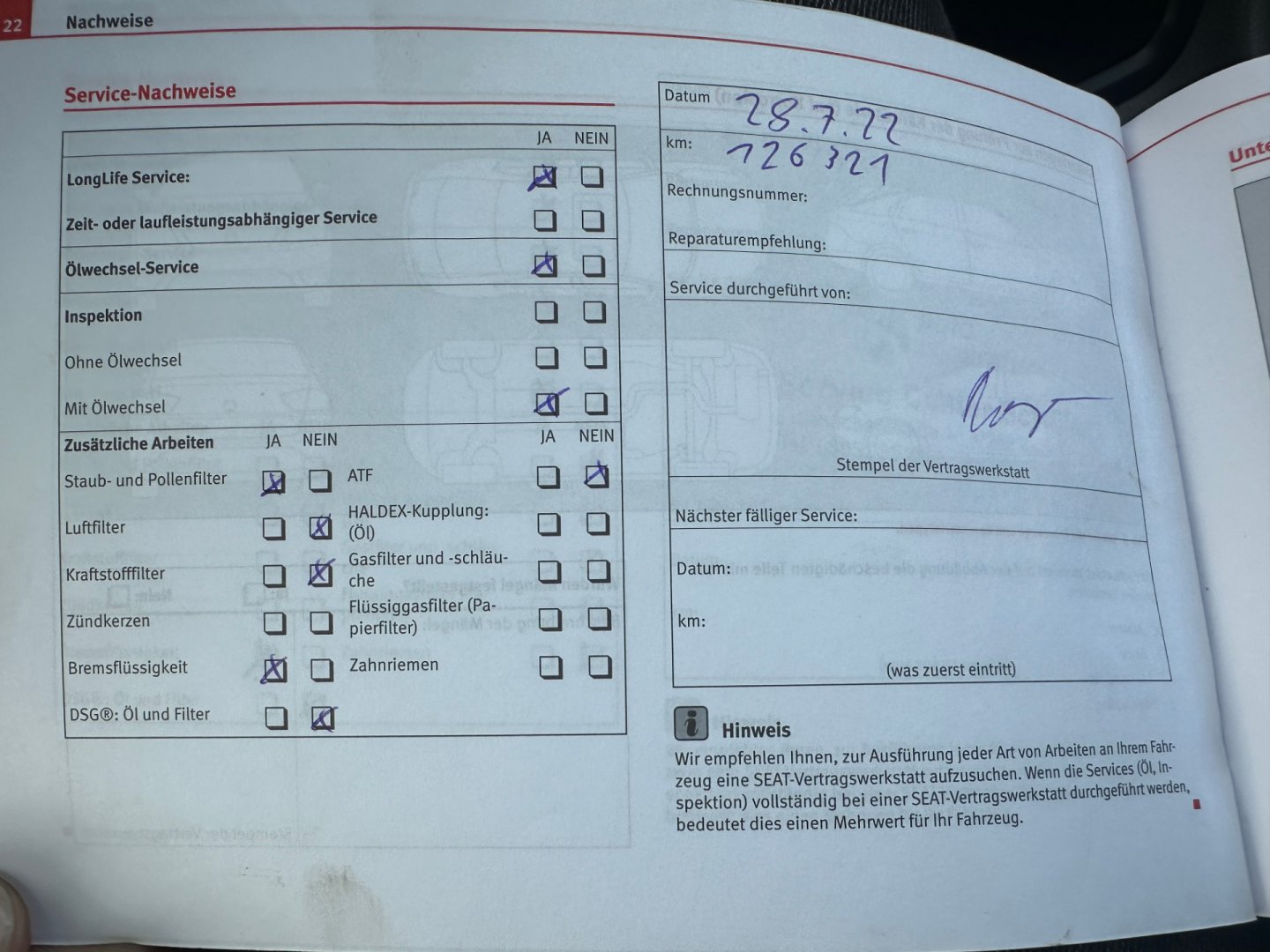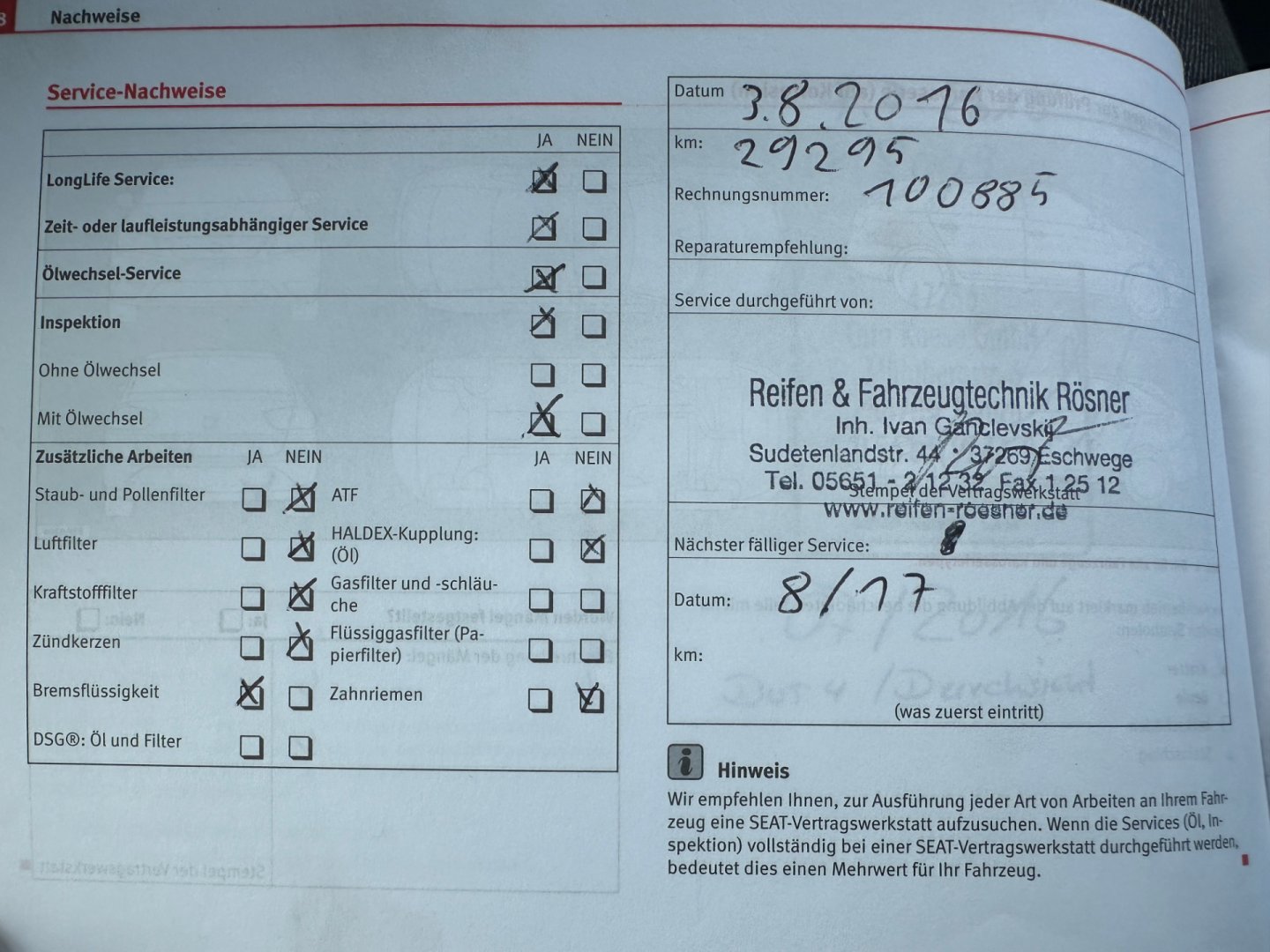 - Servisní knížka