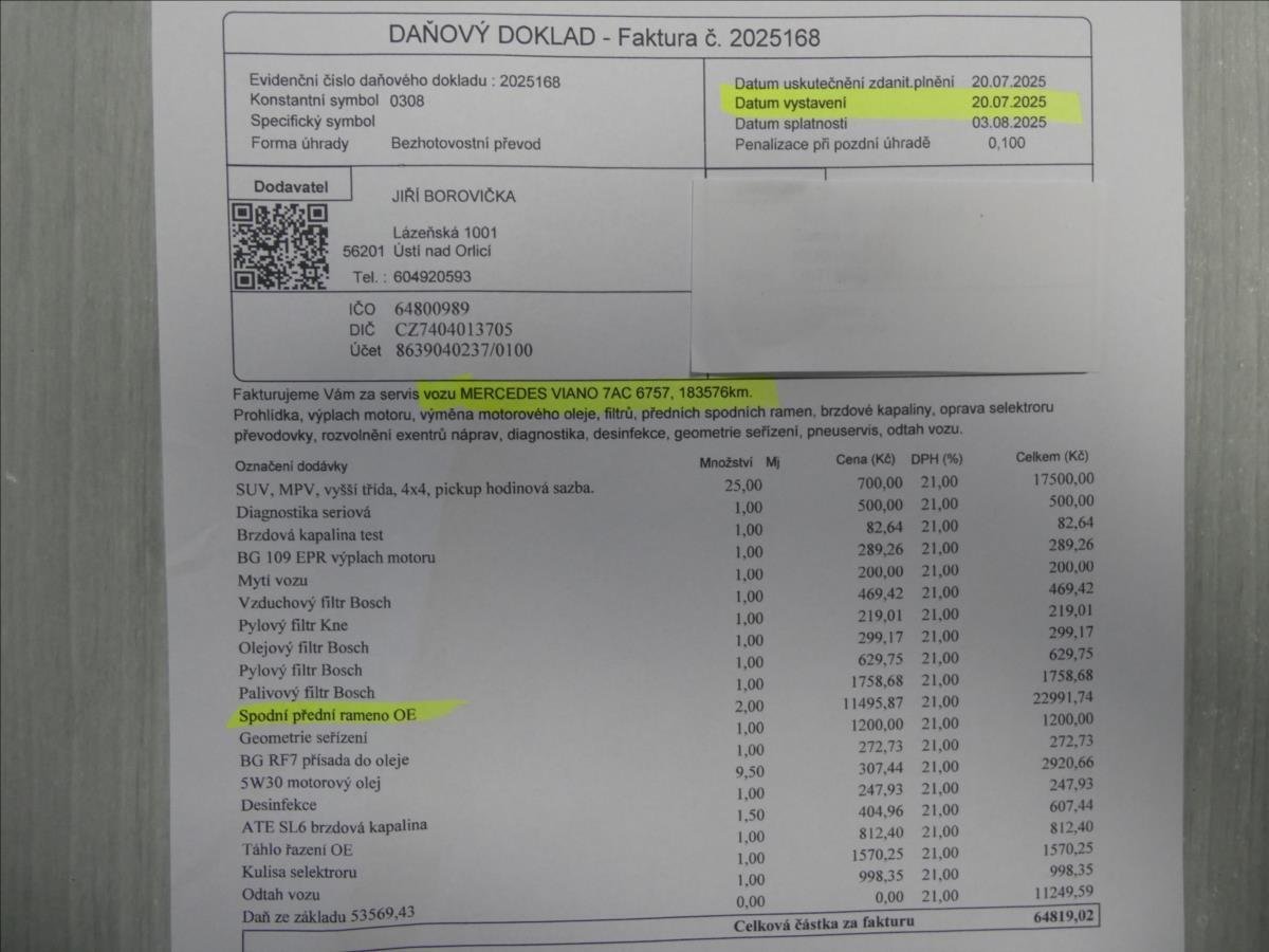Druhý majitel; Úvěr možný; koupeno v ČR; 2.majitel od 9/2018; po servisní prohlídce s výměnou mot.oleje při 198.502km v 11/2025; při 192.575km př.kotouče; při 183.576km komplet přední ramena; ... Možnost odpočtu DPH-cena bez DPH je 640.000; -Kč.
