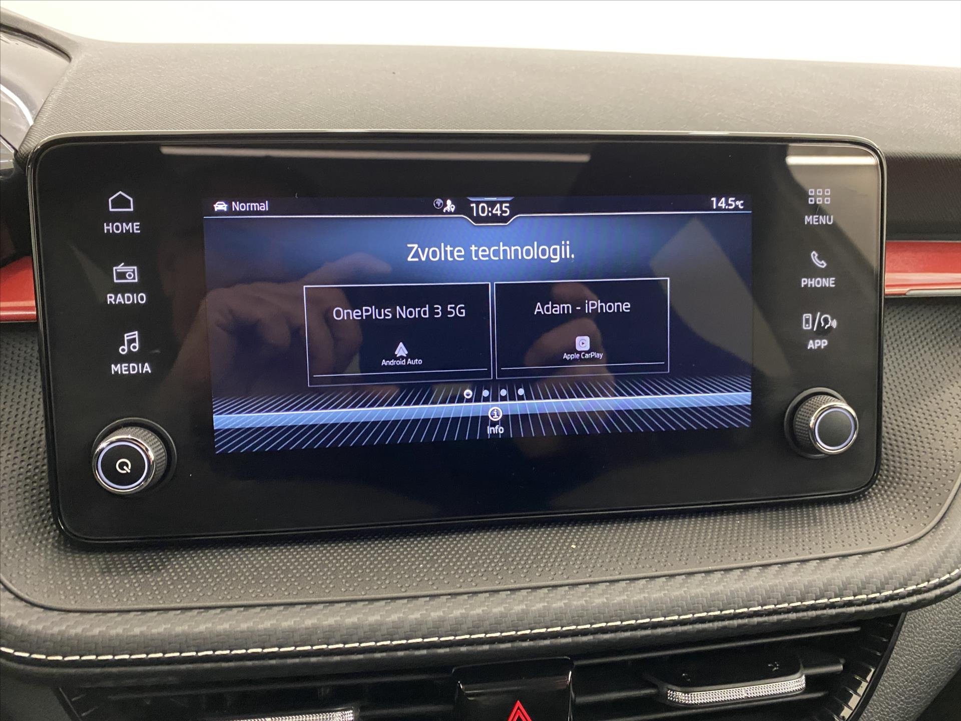 Palubní systémy a konektivita Android Auto, Apple Car Play, USB, Originální autorádio, Bezdrátová nabíječka MT, Bluetooth, Dotykové ovládání palubního počítače, Palubní počítač