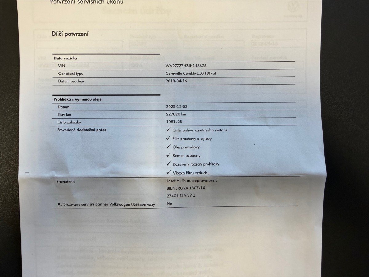 - Servisní knížka
