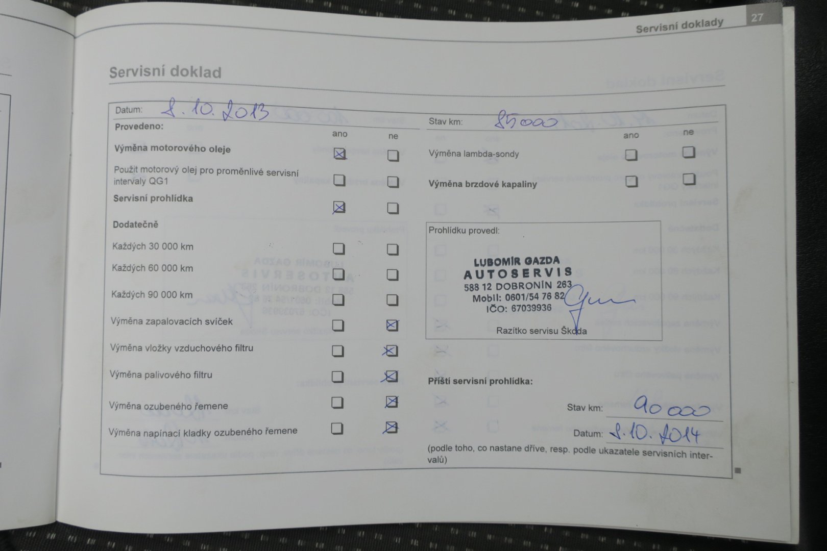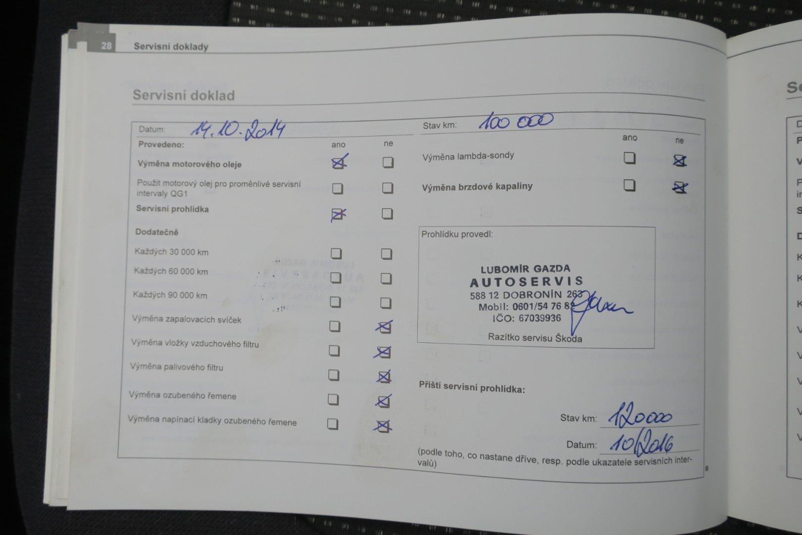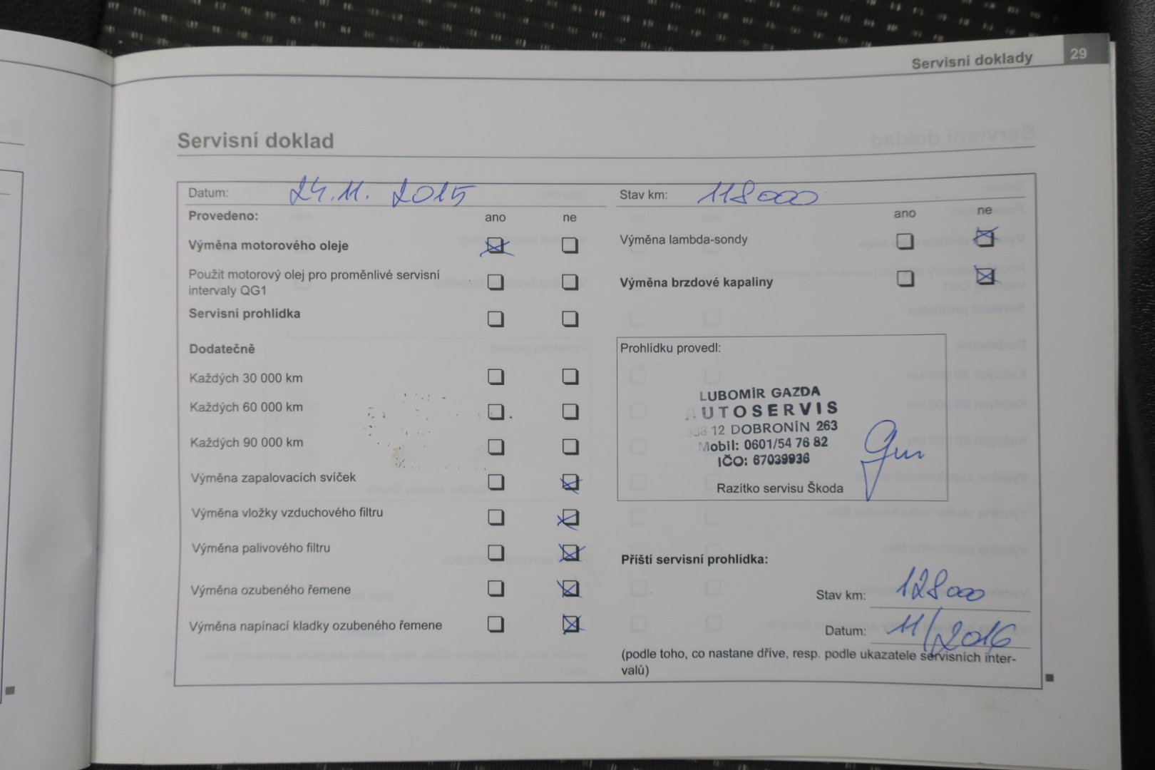 - Servisní knížka