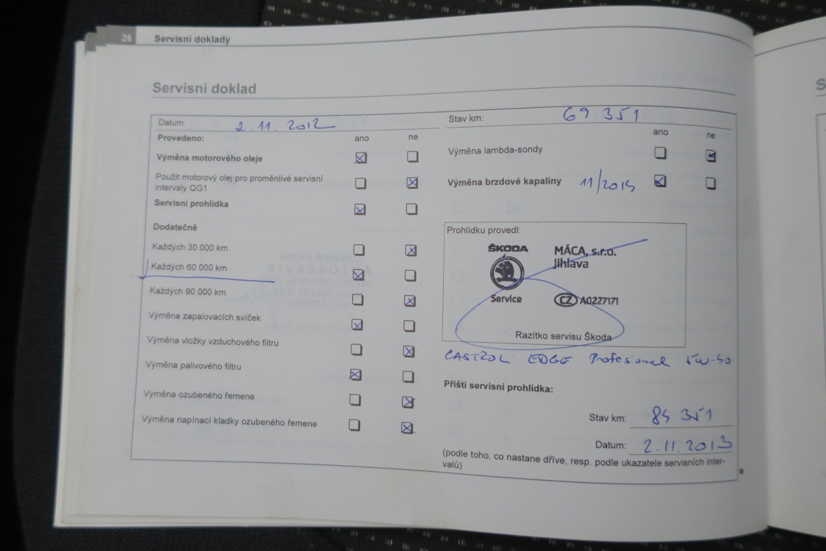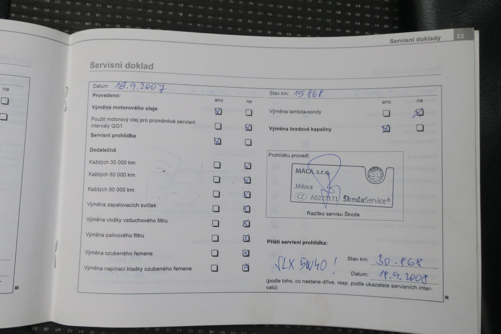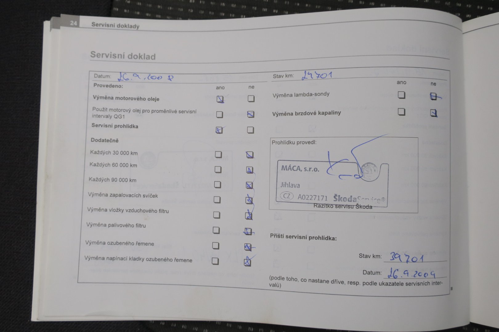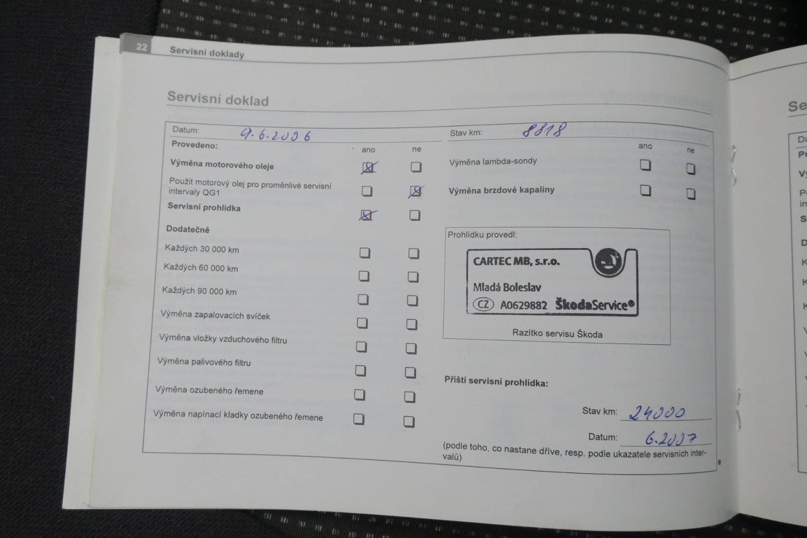 - Servisní knížka