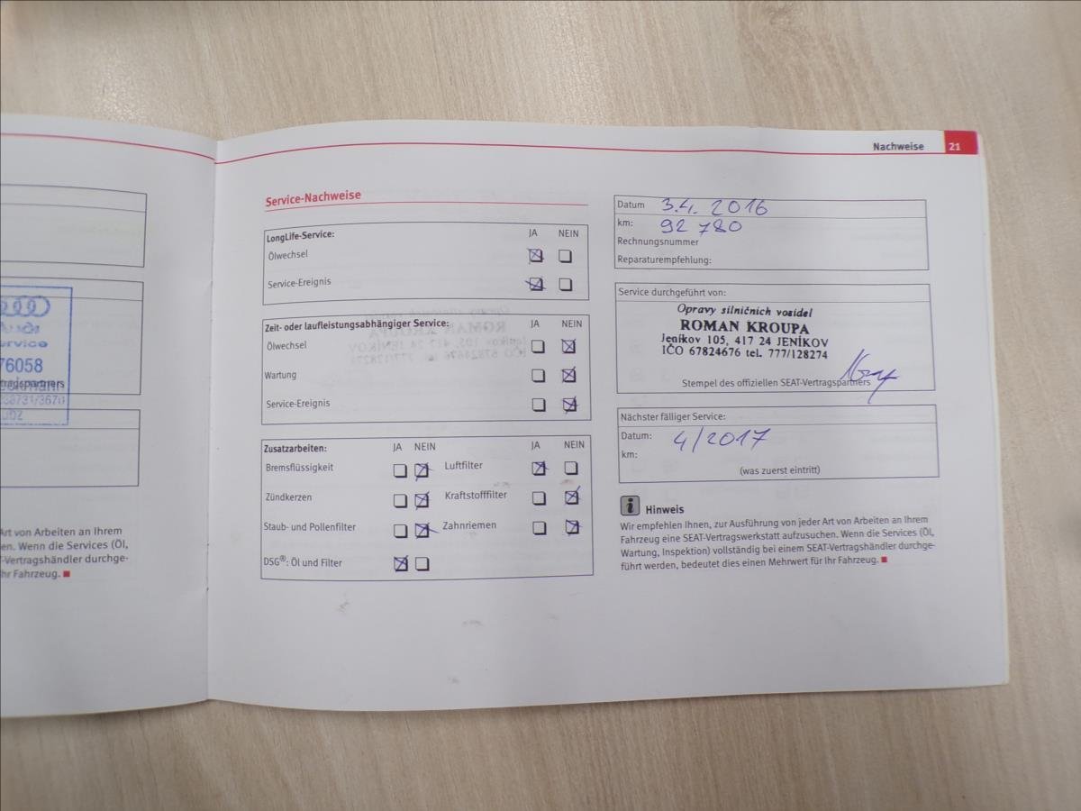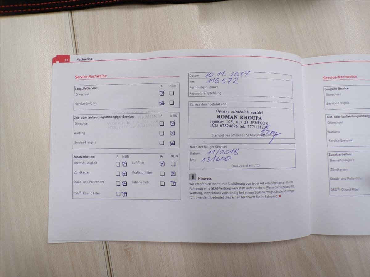 • Servisní knížka
