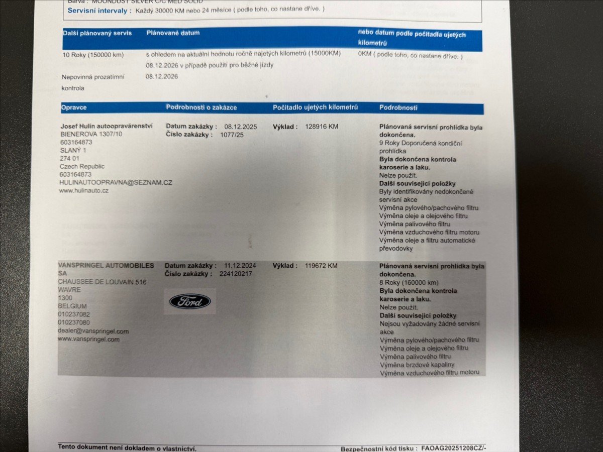 - Servisní knížka