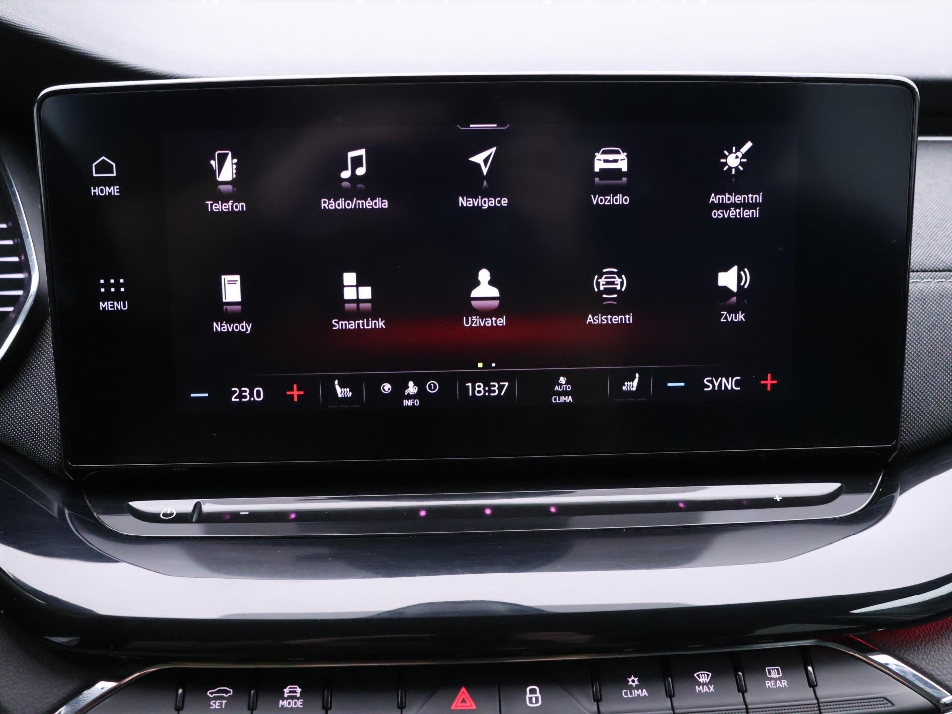 Vnitřní výbava a komfort Klimatizace aut. , Klimatizace dvouzónová, Klimatizovaná přihrádka, Senzor tlaku v pneumatikách, Vyhřívaný volant, Deaktivace airbagu spolujezdce, Multifunkční volant, Nastavitelný volant, El. sklopná zrcátka, Vyhřívaná zrcátka, Posilovač řízení, El. parkovací brzda, Senzor stěračů, Venkovní teploměr, Ambientní LED osvětlení interiéru, Zadní loketní opěrka