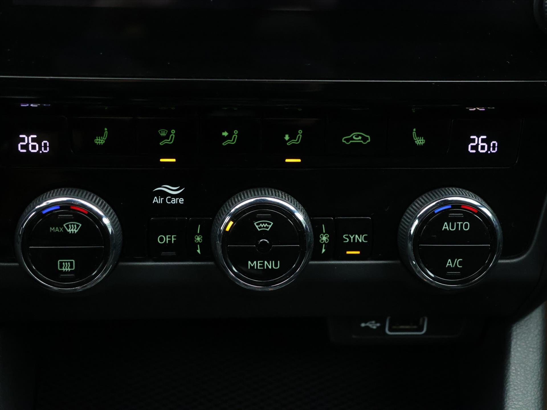 | Vnitřní výbava a komfort | Klimatizace aut. , Klimatizace dvouzónová, Klimatizovaná přihrádka, Senzor tlaku v pneumatikách, Vyhřívané čelní sklo, Bezklíčkové ovládání, Deaktivace airbagu spolujezdce, Multifunkční volant, Nastavitelný volant, El. sklopná zrcátka, Vyhřívaná zrcátka, Posilovač řízení, Senzor stěračů, Venkovní teploměr, Ambientní LED osvětlení interiéru, Zadní loketní opěrka |
