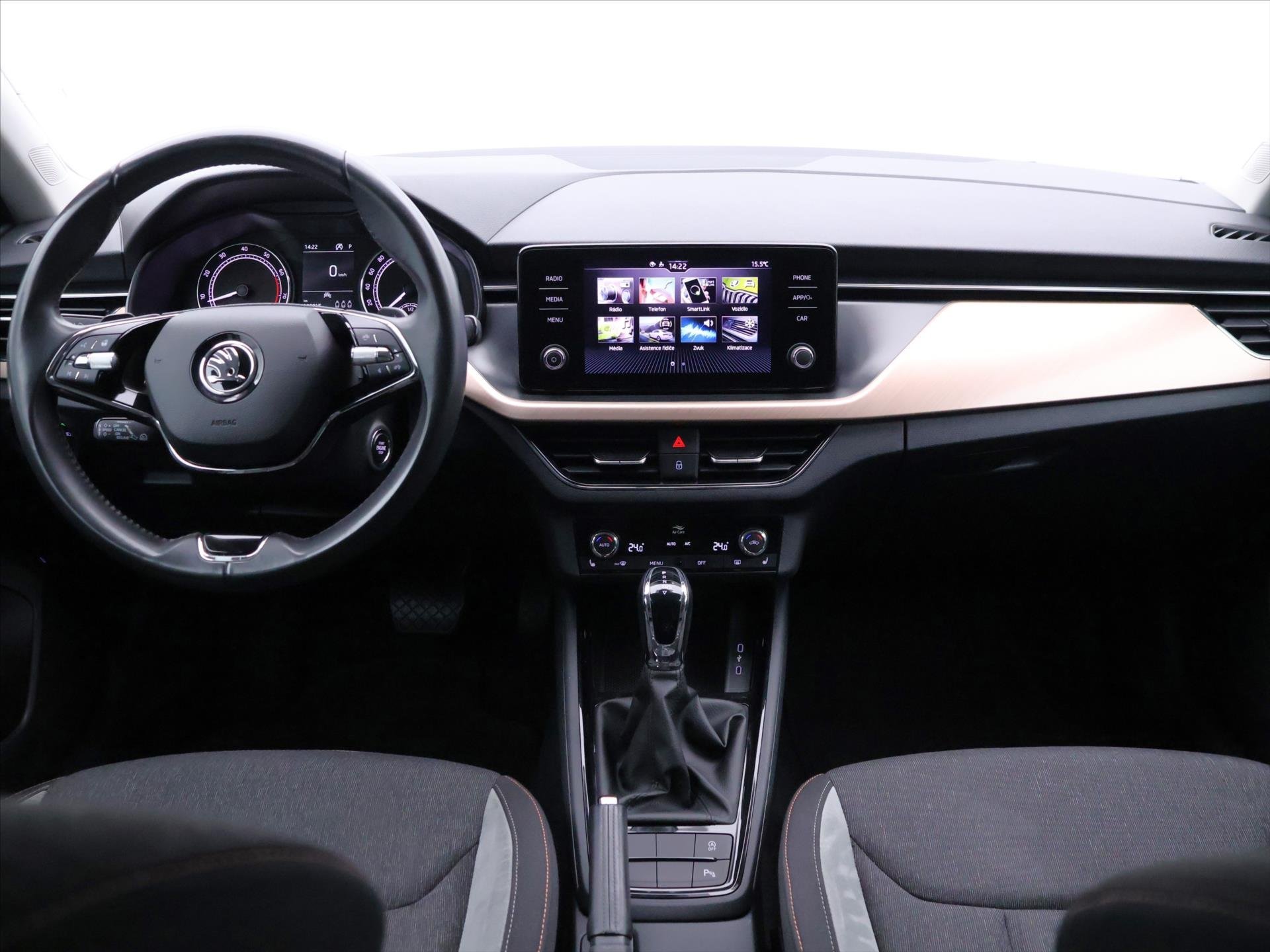 | Vnitřní výbava a komfort | Klimatizace aut. , Klimatizace dvouzónová, Senzor tlaku v pneumatikách, Vyhřívaný volant, Bezklíčkové ovládání, Deaktivace airbagu spolujezdce, Multifunkční volant, Pádla řazení na volantu, Nastavitelný volant, El. sklopná zrcátka, Vyhřívaná zrcátka, Posilovač řízení, Senzor stěračů, Venkovní teploměr, Ambientní LED osvětlení interiéru, Zadní loketní opěrka |