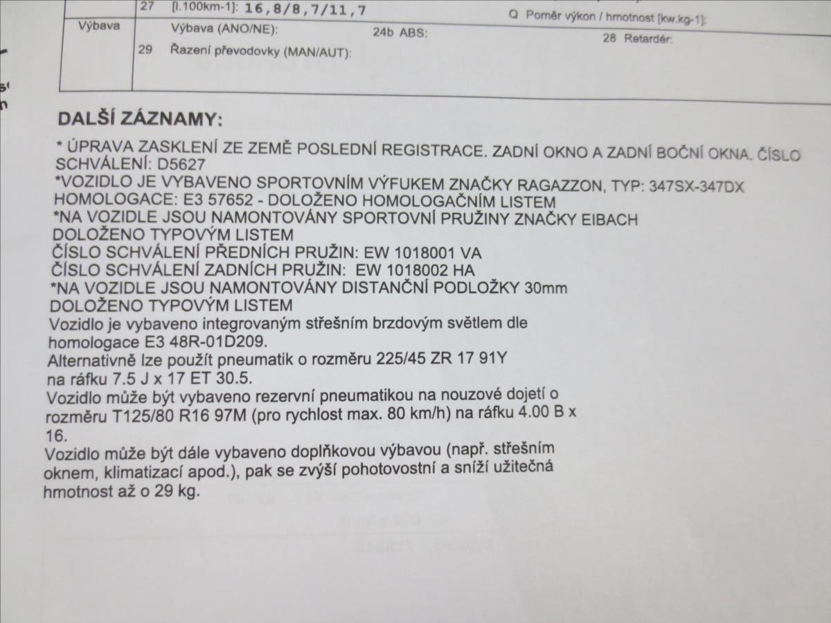 | Vnější výbava | Dojezdové rezervní kolo, Laděný výfuk, Tónovaná skla, Zatmavená zadní skla |