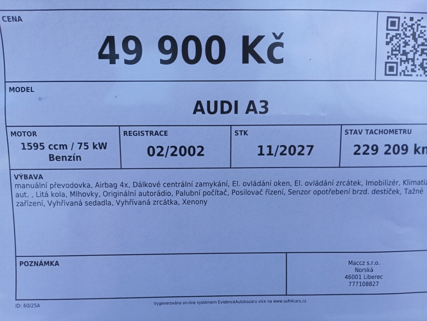 Veškeré údaje obsažené v tomto inzerátu mají pouze informativní charakter a nejsou tak ve smyslu občanského zákoníku: (i) návrhem na uzavření smlouvy dle § 1731 a § 1732; ani (ii) veřejným příslibem dle § 1733. Uveřejněním tohoto inzerátu nevzniká uživateli služby ani jakýmkoli třetím osobám nárok na uzavření smlouvy, zejména se vylučuje aplikace § 1732 odst. 2 občanského zákoníku.