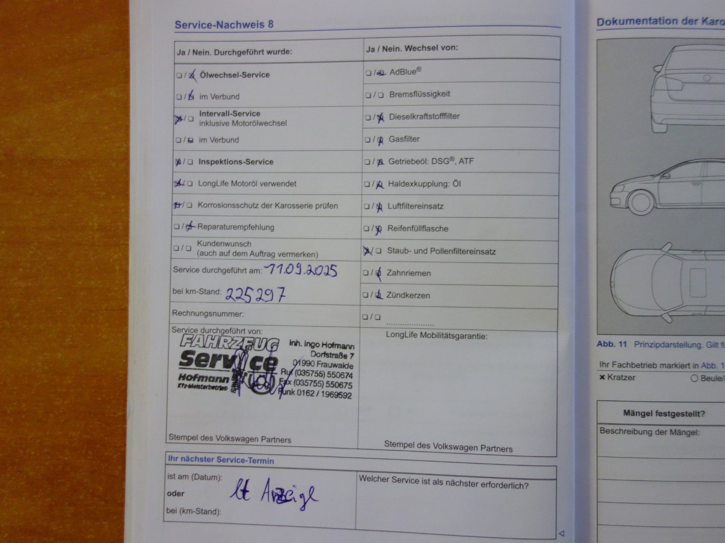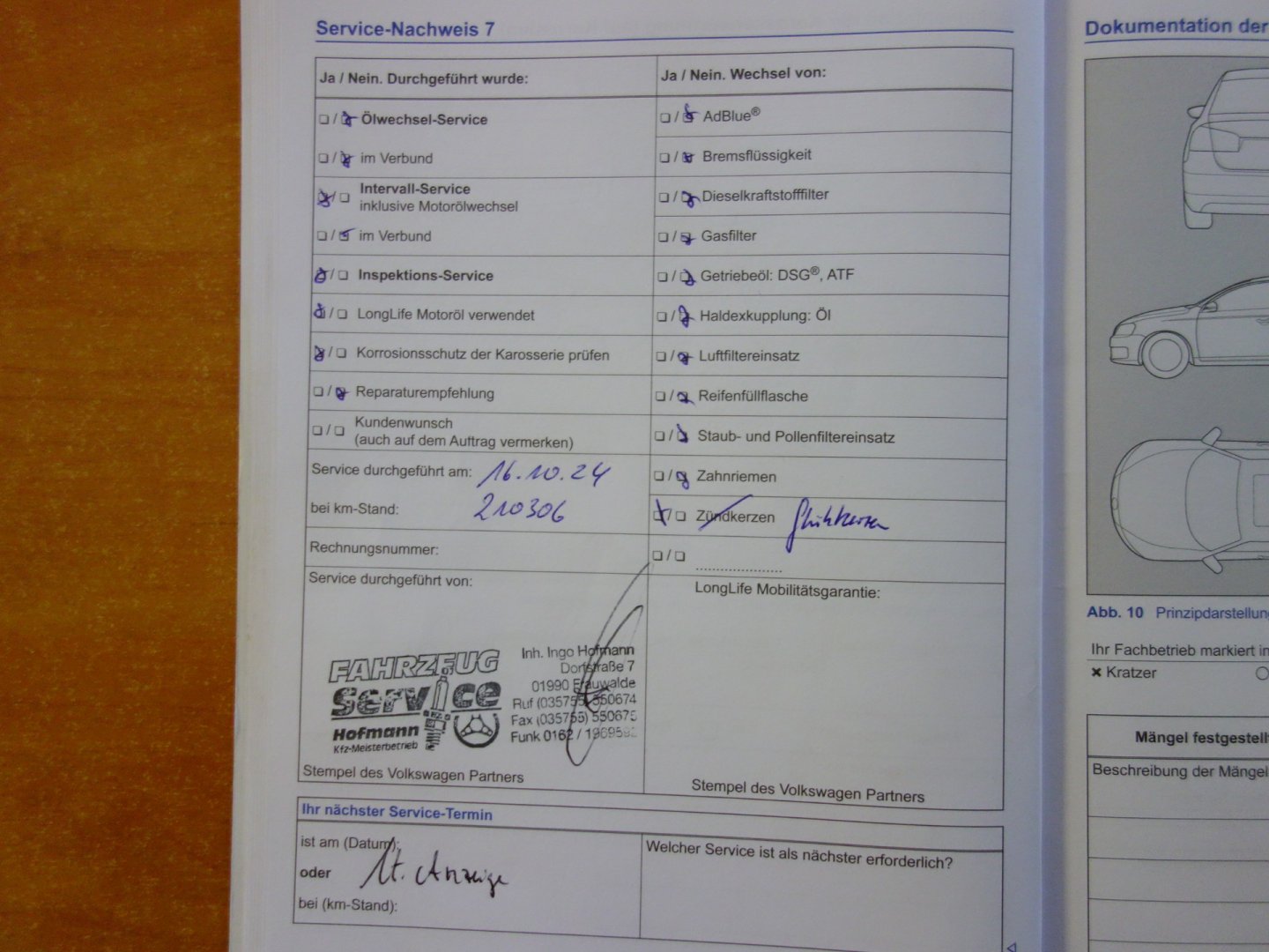 • Servisní knížka