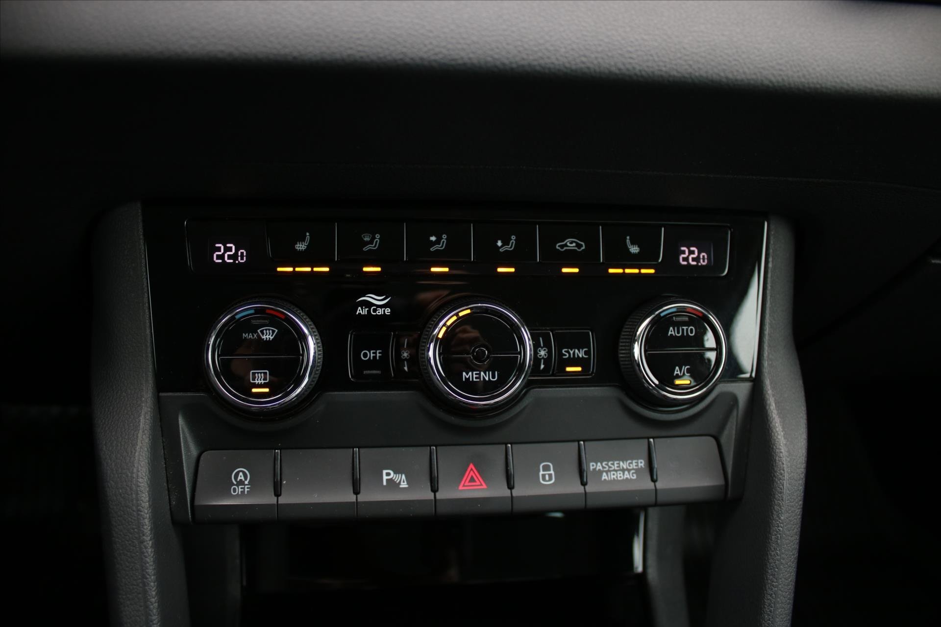 Vnitřní výbava a komfort Klimatizace aut. , Bezklíčkové ovládání, Klimatizace dvouzónová, El. sklopná zrcátka, Multifunkční volant, Nastavitelný volant, Posilovač řízení, Senzor stěračů, Senzor tlaku v pneumatikách, Vyhřívaná zrcátka, Vyhřívaný volant