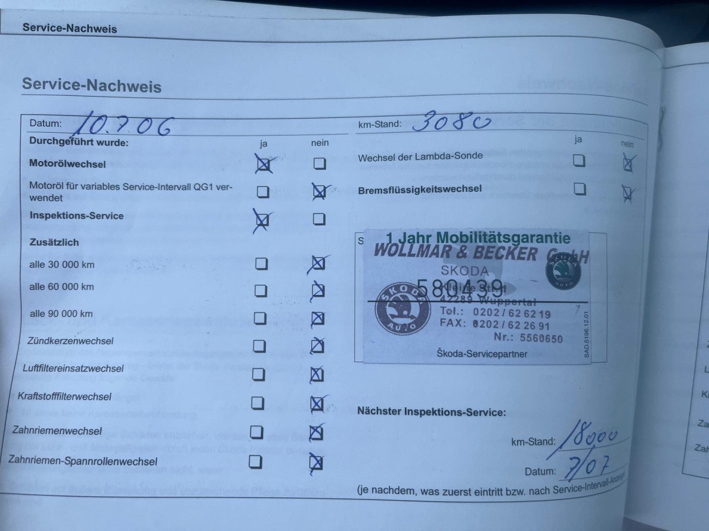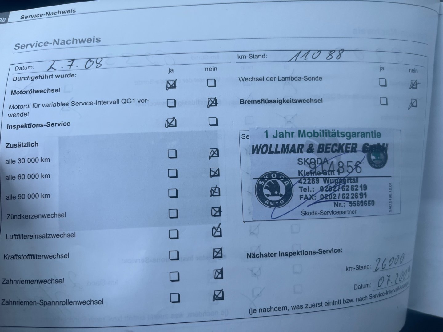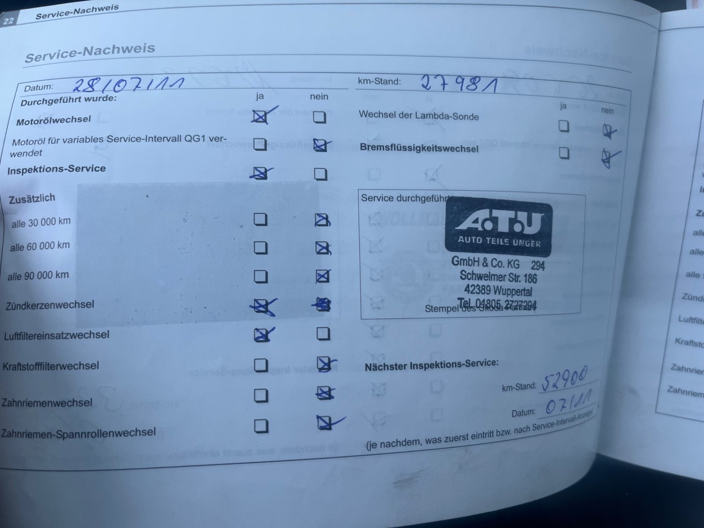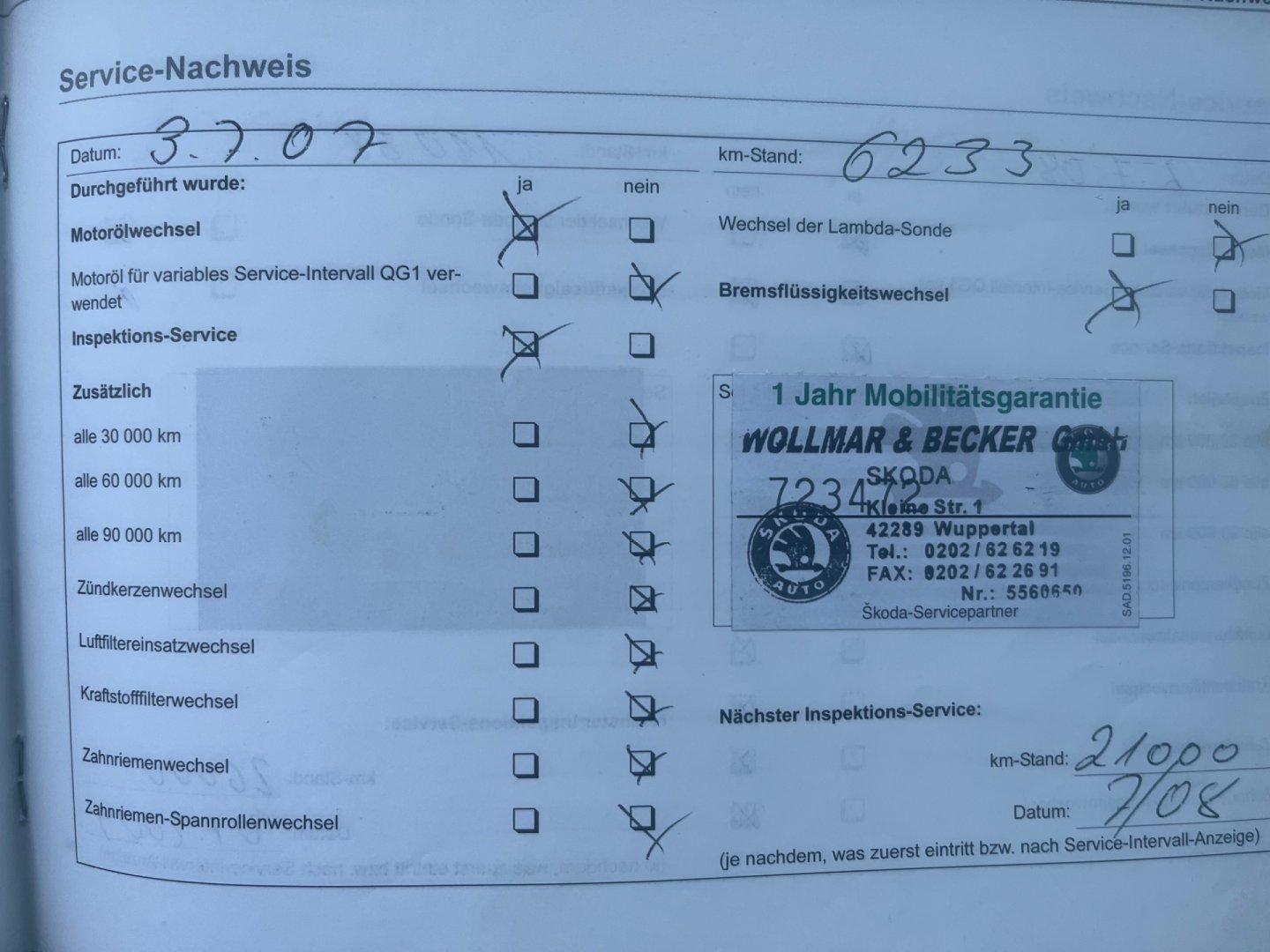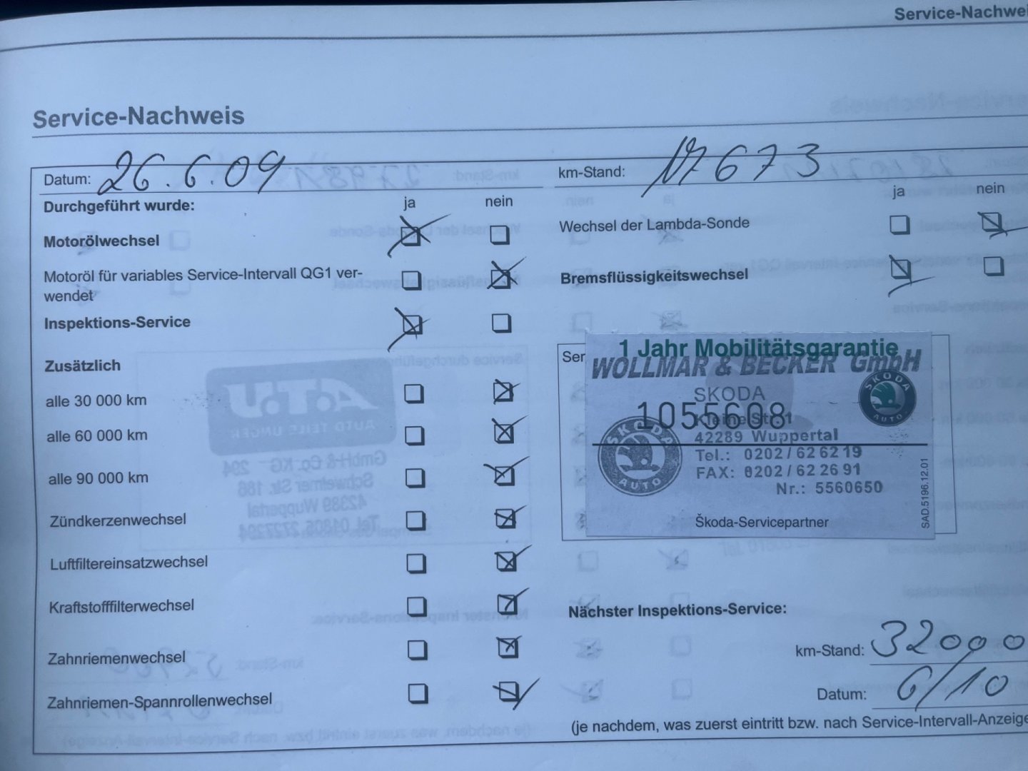 • Servisní knížka