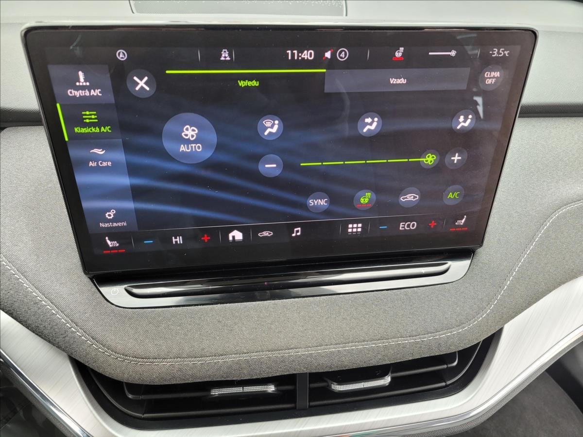 | Vnitřní výbava a komfort | Ambientní LED osvětlení interiéru, Klimatizace aut. , Deaktivace airbagu spolujezdce, Klimatizace dvouzónová, El. sklopná zrcátka, El. parkovací brzda, Kožené čalounění, Multifunkční volant, Nastavitelný volant, Nezávislé topení, Senzor opotřebení brzd. destiček, Senzor stěračů, Senzor tlaku v pneumatikách, Střešní okno, Vyhřívaná zrcátka, Vyhřívané čelní sklo, Vyhřívaný volant |