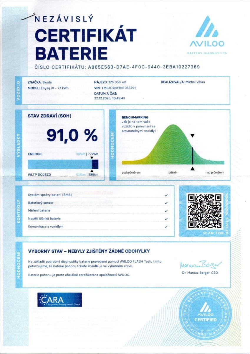 První majitel; Style; 1.majitel; pravidelný servis; navi; kůže; výhřev; panorama; orig alu 19; virtual; full led; keyless; baterie 82kWh Záruka na baterie 8let.Dojezd 400km.AKTUÁLNÍ STAV BATERÍ JE 91%; TEST BATERIÍ JE K VOZU!!!!