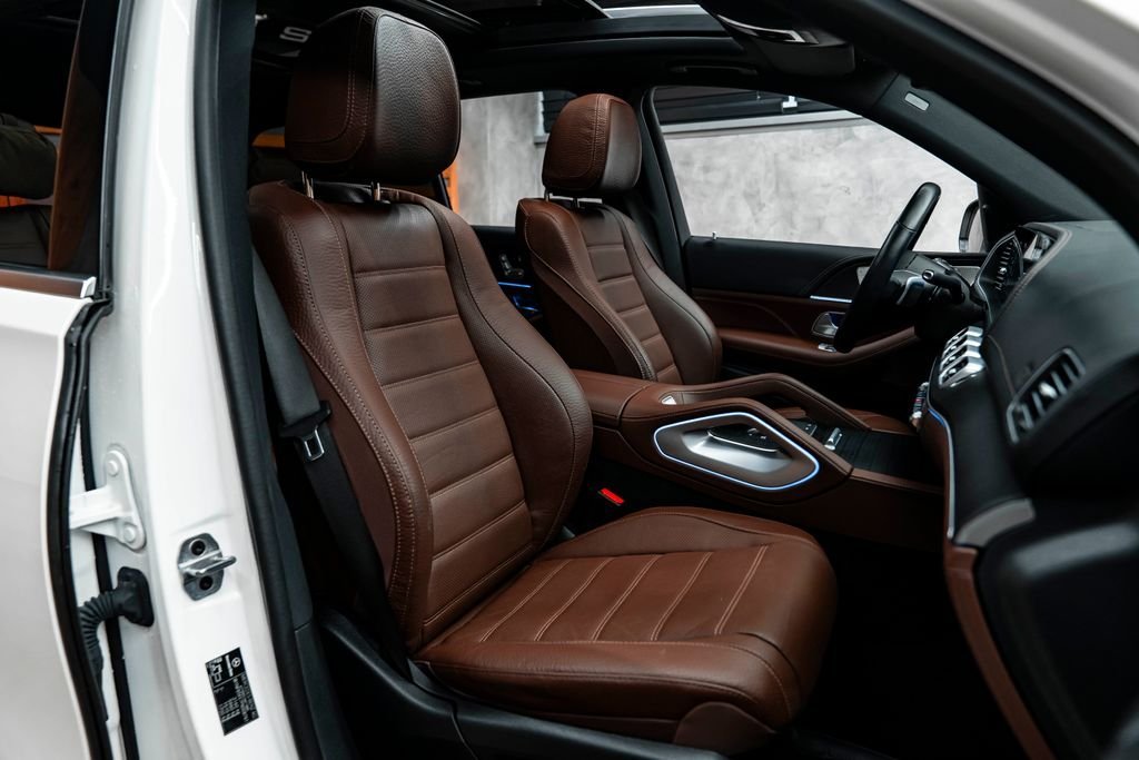 Bratislava; Mercedes-Benz GLE 450 4MATIC Exteriér AMG Line exteriér LED svetlomety High Performance 20-palcové AMG zliatinové disky kolies AMG exteriérový styling Chrómové exteriérové doplnky Strešné lyžiny (chrómové) Elektricky sklopné vonkajšie spätné zrkadlá Parkovacie senzory vpredu a vzadu 360° kamerový systém (Surround View) Interiér AMG Line interiér Kožené čalúnenie (hnedé) Elektricky nastaviteľné predné sedadlá s pamäťou Vyhrievané predné sedadlá Multifunkčný kožený volant Ambientné osvetlenie interiéru (viacfarebné) Interiérové obklady z brúseného hliníka Čierny strop Elektricky nastaviteľný volant Osvetlené výplne dverí Infotainment a konektivita Informačno-zábavný systém MBUX Dva digitálne displeje (prístrojový panel + centrálny displej) Navigačný systém Apple CarPlay a Android Auto Ovládanie dotykom aj touchpadom Digitálny prístrojový panel Prémiový audiosystém Burmester® Asistenčné systémy a bezpečnosť Aktívny parkovací asistent Attention Assist (asistent pozornosti vodiča) Aktívny brzdový asistent Asistent rozjazdu do kopca Asistent udržiavania v jazdnom pruhu Monitorovanie mŕtveho uhla Adaptívny tempomat Komfort a technológie Vzduchový podvozok AIRMATIC Automatická prevodovka 9G-TRONIC Pohon všetkých kolies 4MATIC Mild-hybridná technológia EQ Boost