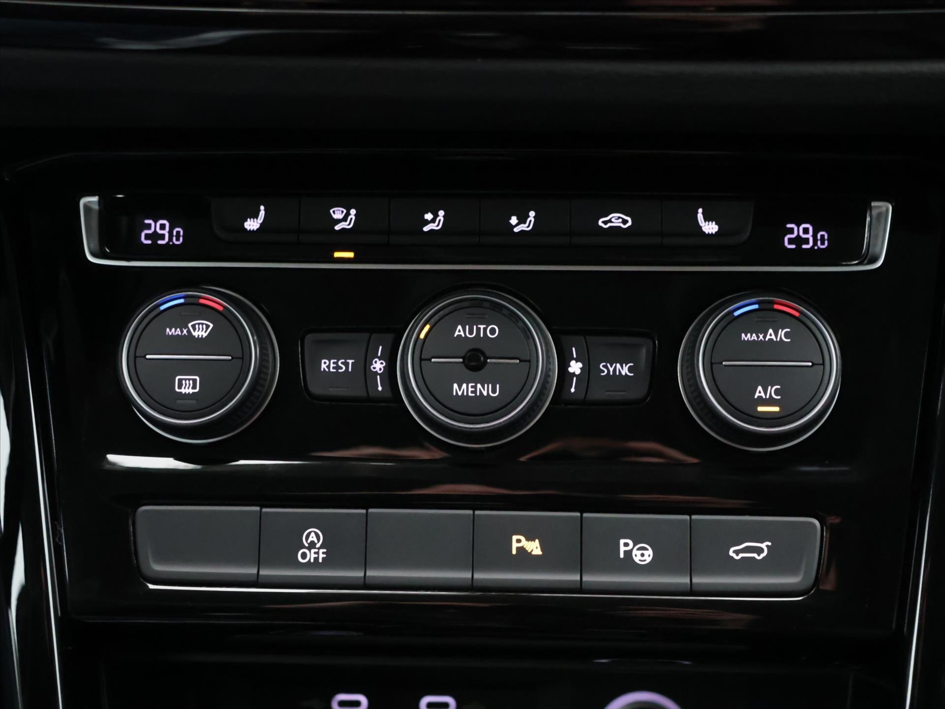 | Vnitřní výbava a komfort | Klimatizace aut. , Klimatizace třízónová, Senzor tlaku v pneumatikách, Bezklíčkové ovládání, Multifunkční volant, Nastavitelný volant, El. sklopná zrcátka, Vyhřívaná zrcátka, Posilovač řízení, El. parkovací brzda, Venkovní teploměr, Ambientní LED osvětlení interiéru |