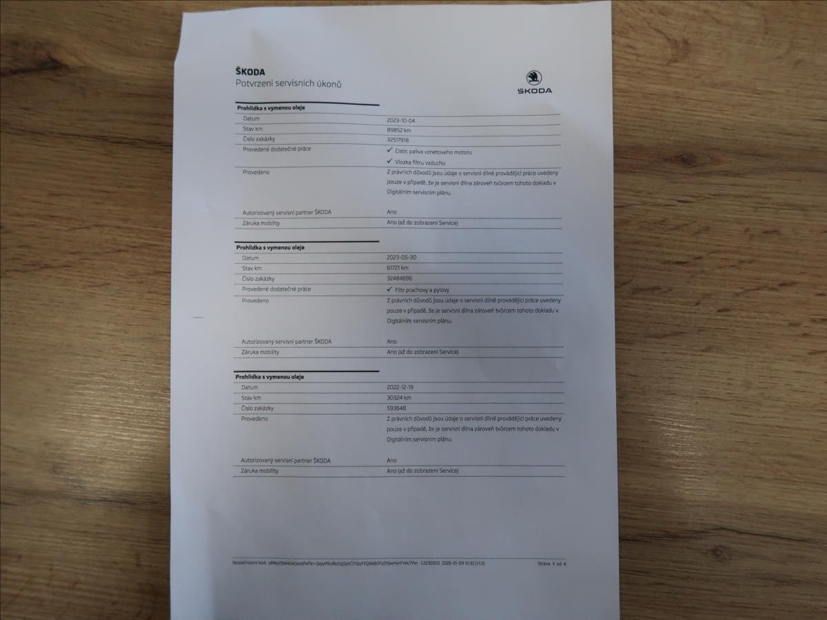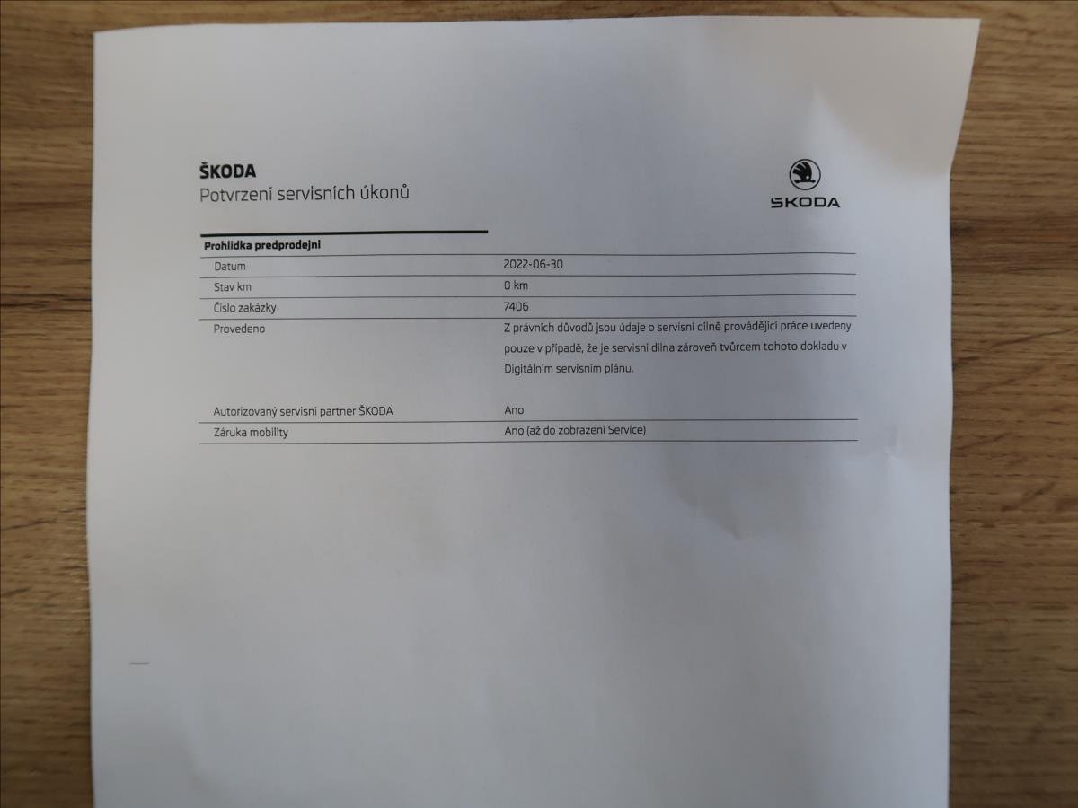 První majitel; Úvěr možný; Cena bez DPH: 313 966; -Kč. Vozidlo zakoupeno jako nové v České republice; po prvním majiteli; řádně vedená servisní kniha; pravidelný servis v autorizovaném servise Škoda; výbava Style; LED přední světlomety; zadní parkovací senzory; tempomat; tažné zařízení; druhá sada letních pneu; dvouzónová automatická klimatizace; vyhřívaná přední sedadla + volant; možný odpočet DPH; možný protiúčet; možný prodej na splátky.