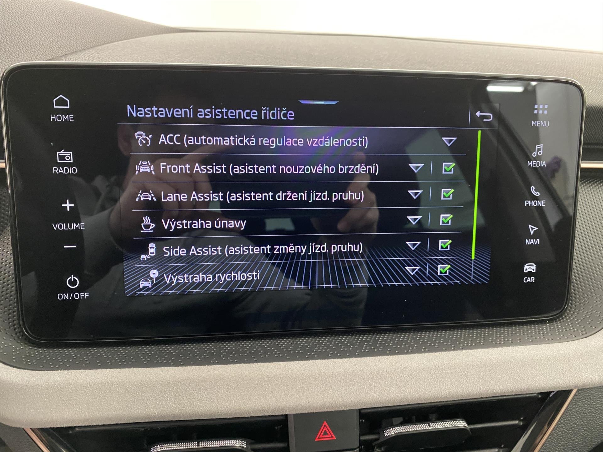 | Asistenční systémy | Adaptivní tempomat, Asistent pro vedení vozu v jízdních pruzích, Asistent rozjezdu do kopce, Asistent změny jízdního pruhu, Parkovací senzory zadní |