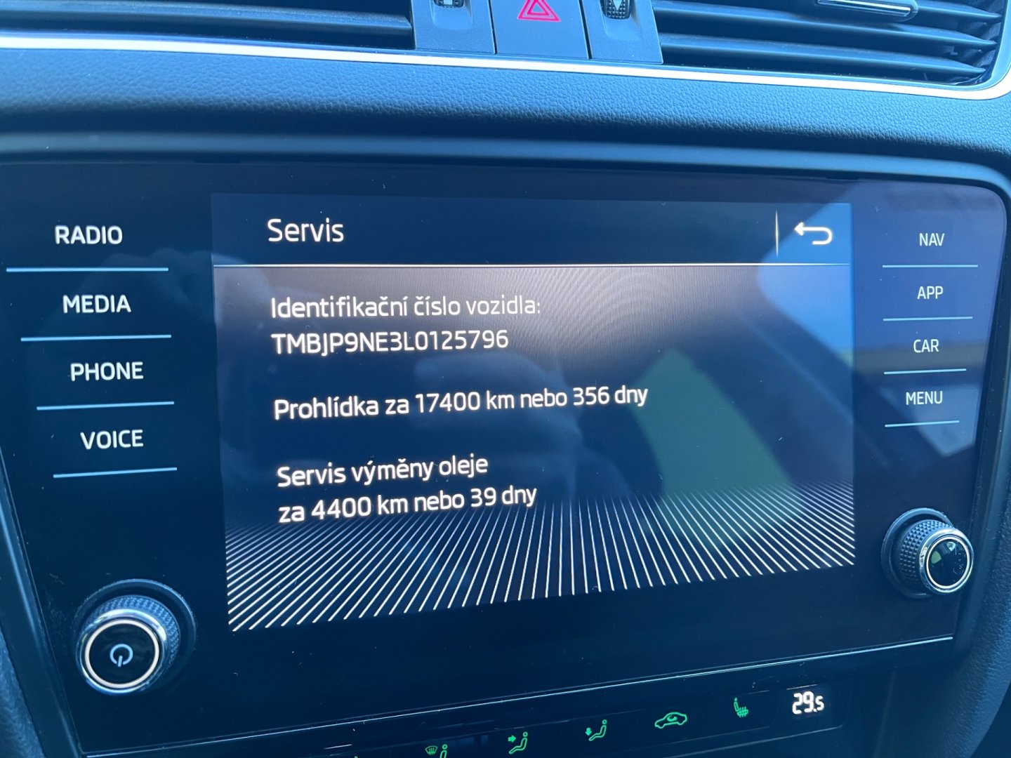 | Vnitřní výbava a komfort | Deaktivace airbagu spolujezdce, El. ovládání oken, Klimatizace dvouzónová, Multifunkční volant, Nastavitelný volant, Posilovač řízení, Senzor opotřebení brzd. destiček, Senzor stěračů, Senzor tlaku v pneumatikách, Venkovní teploměr, Vnitřní teploměr, Vyhřívaná zrcátka, Zadní loketní opěrka |