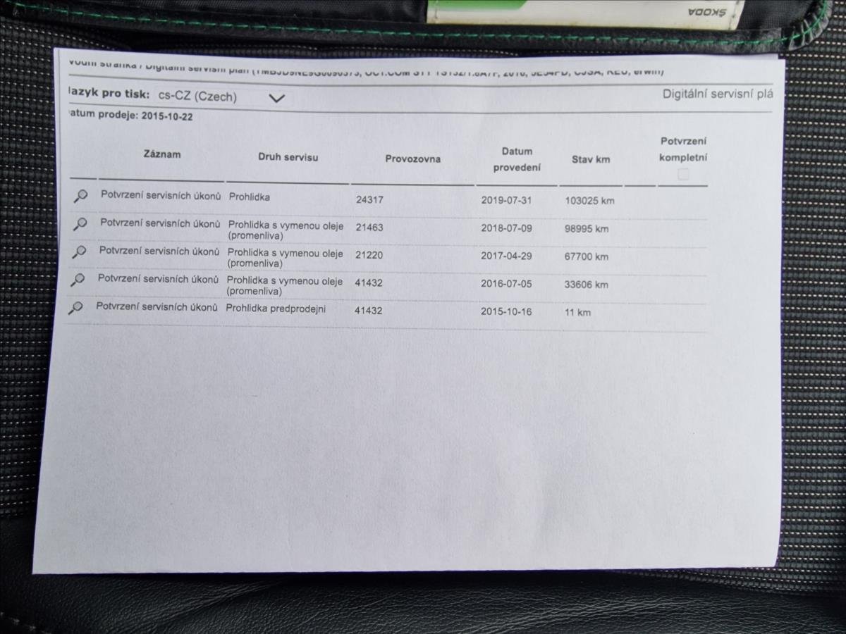 • Servisní knížka