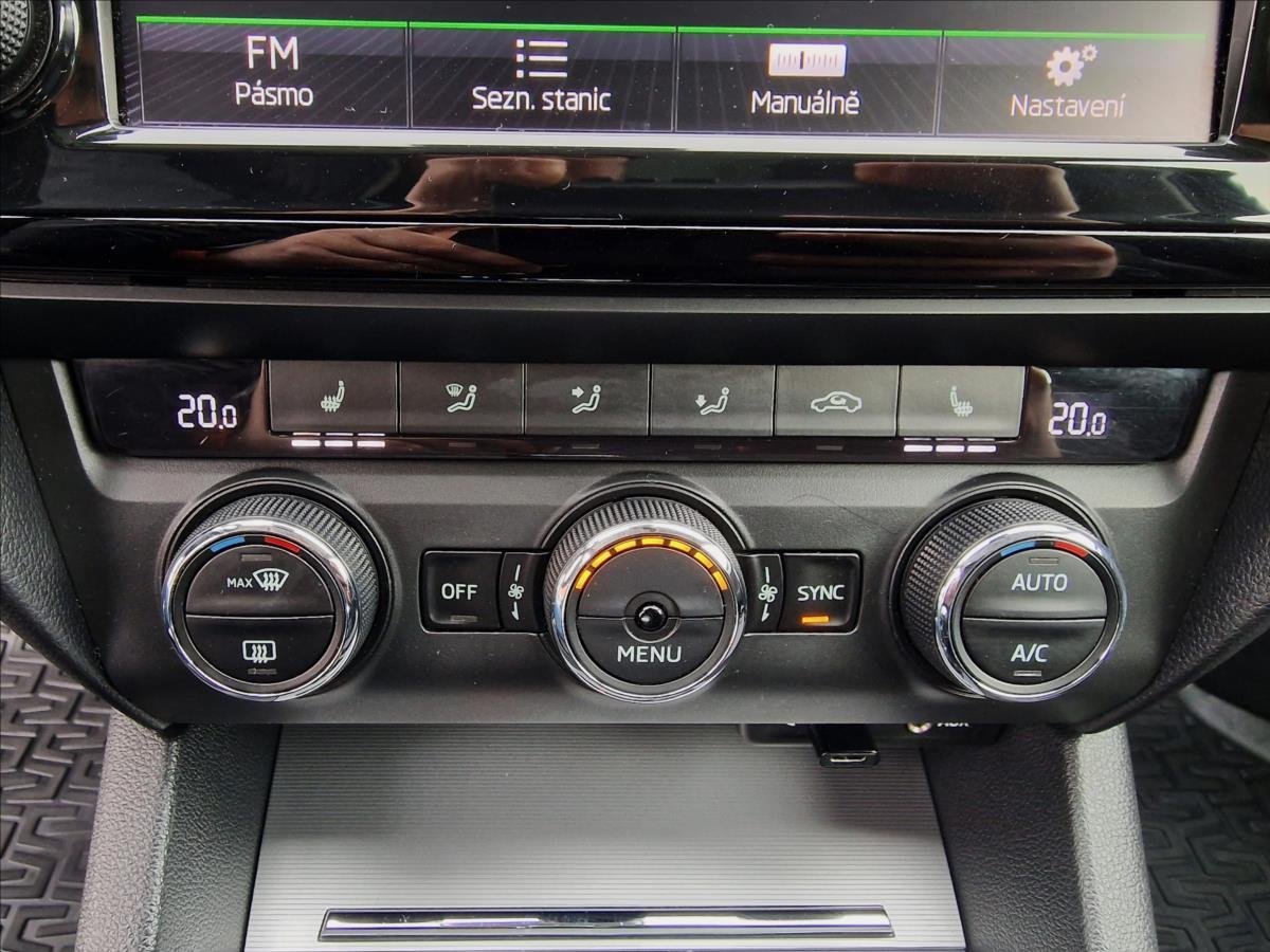 Vnitřní výbava a komfort Bezklíčkové ovládání, Deaktivace airbagu spolujezdce, Klimatizace dvouzónová, El. sklopná zrcátka, Klimatizovaná přihrádka, Kožené čalounění, Multifunkční volant, Nastavitelný volant, Posilovač řízení, Pádla řazení na volantu, Senzor stěračů, Venkovní teploměr, Vnitřní teploměr, Vyhřívaná zrcátka, Zadní loketní opěrka