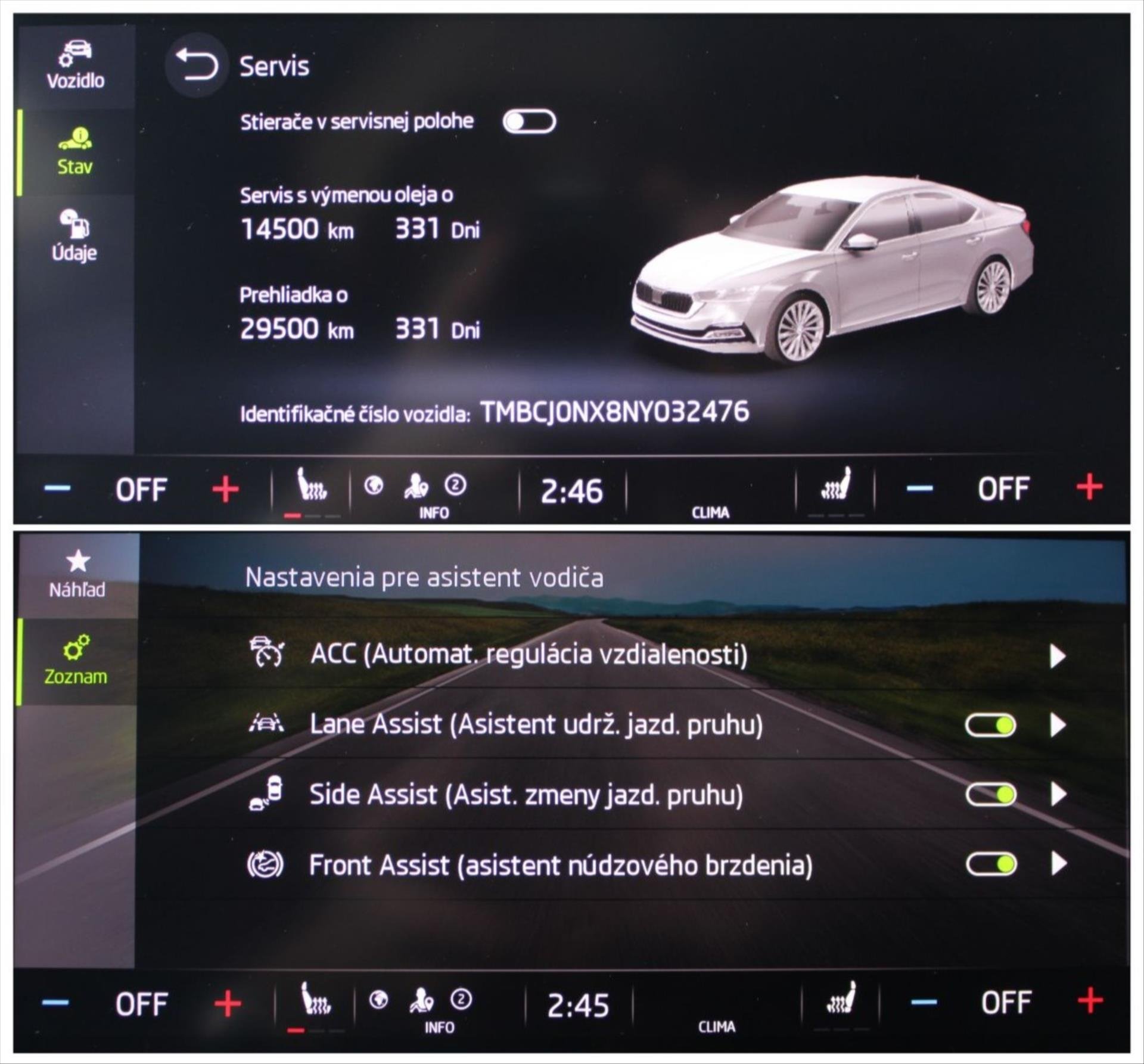 Parametry vozidla