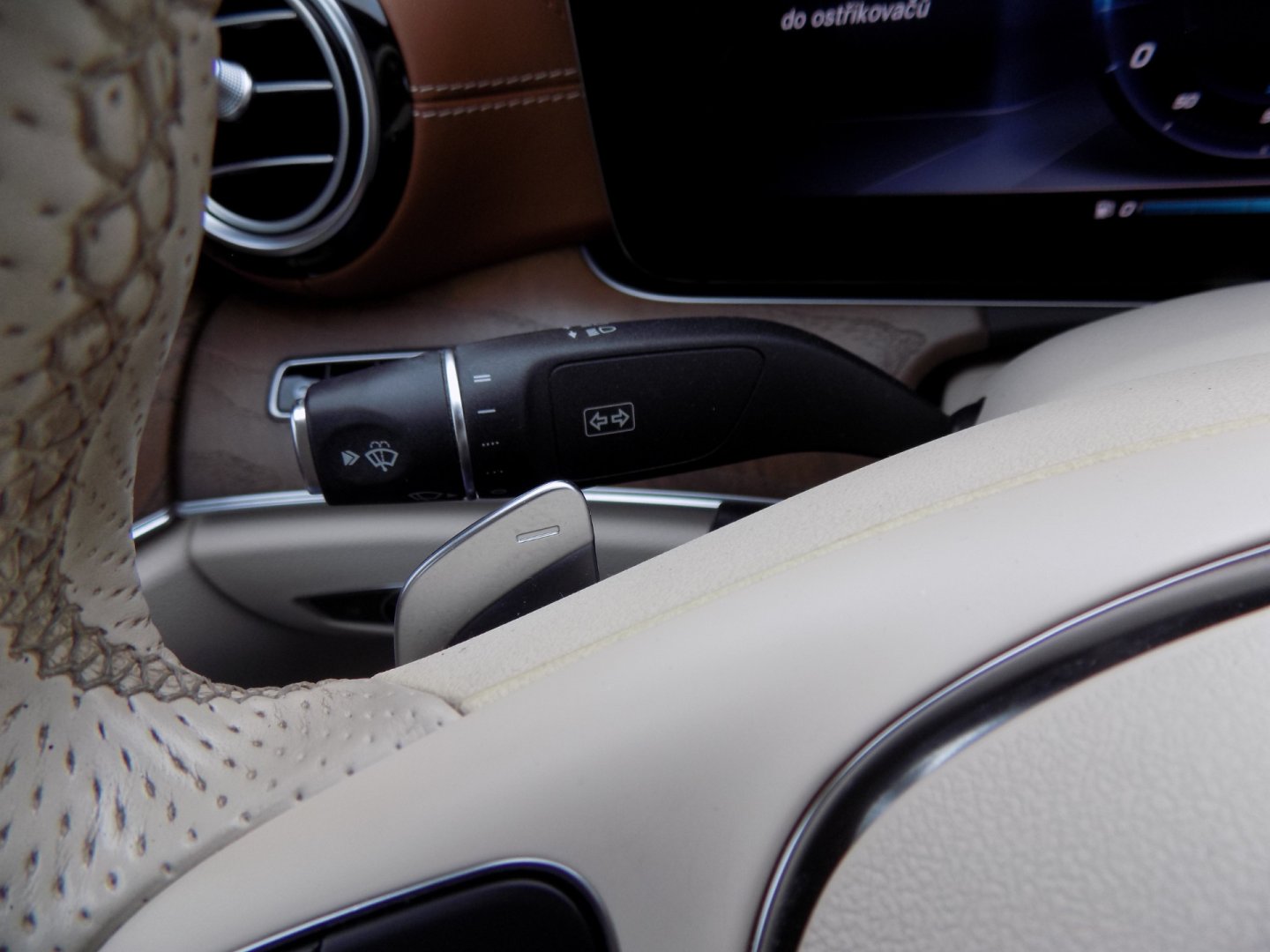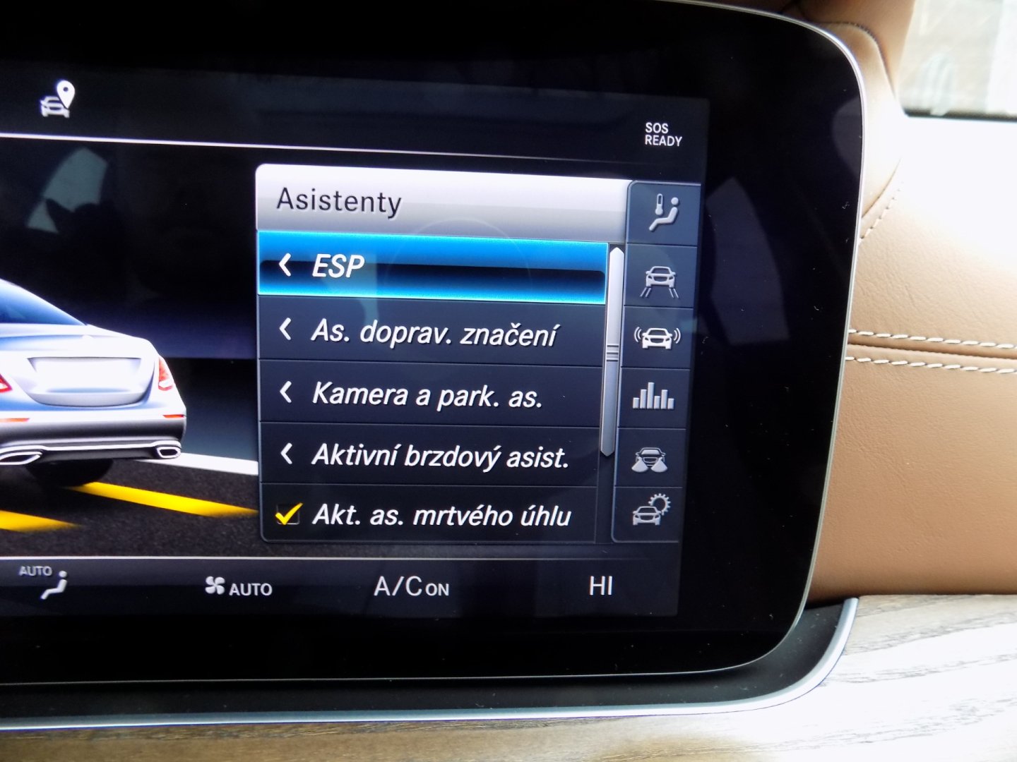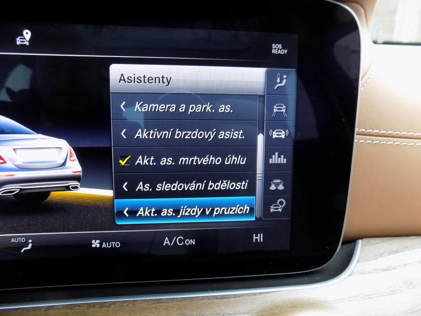 | Vnitřní výbava a komfort | Ambientní LED osvětlení interiéru, Bezklíčkové ovládání, Deaktivace airbagu spolujezdce, Dřevěné obložení, El. ovládání oken, El. ovládání zrcátek, El. ovládaný kufr, El. parkovací brzda, El. sklopná zrcátka, Klimatizace aut. , Klimatizace dvouzónová, Kožené čalounění, Multifunkční volant, Nastavitelný volant, Pádla řazení na volantu, Posilovač řízení, Senzor opotřebení brzd. destiček, Senzor stěračů, Senzor tlaku v pneumatikách, Střešní okno, Venkovní teploměr, Vyhřívaná zrcátka |