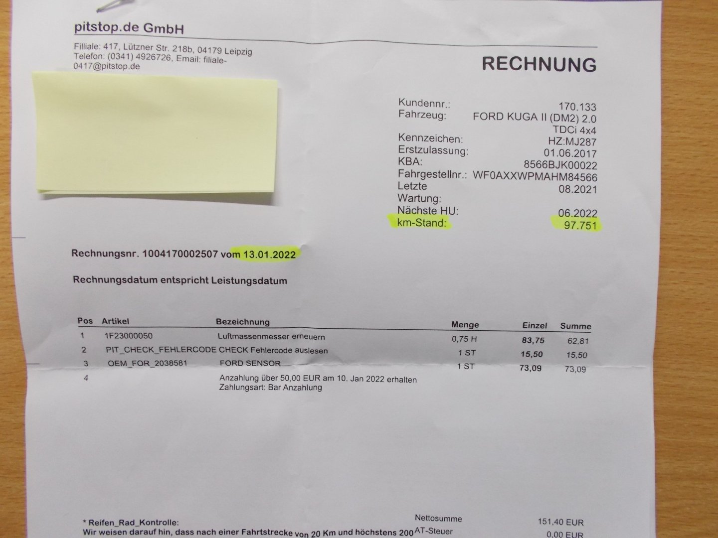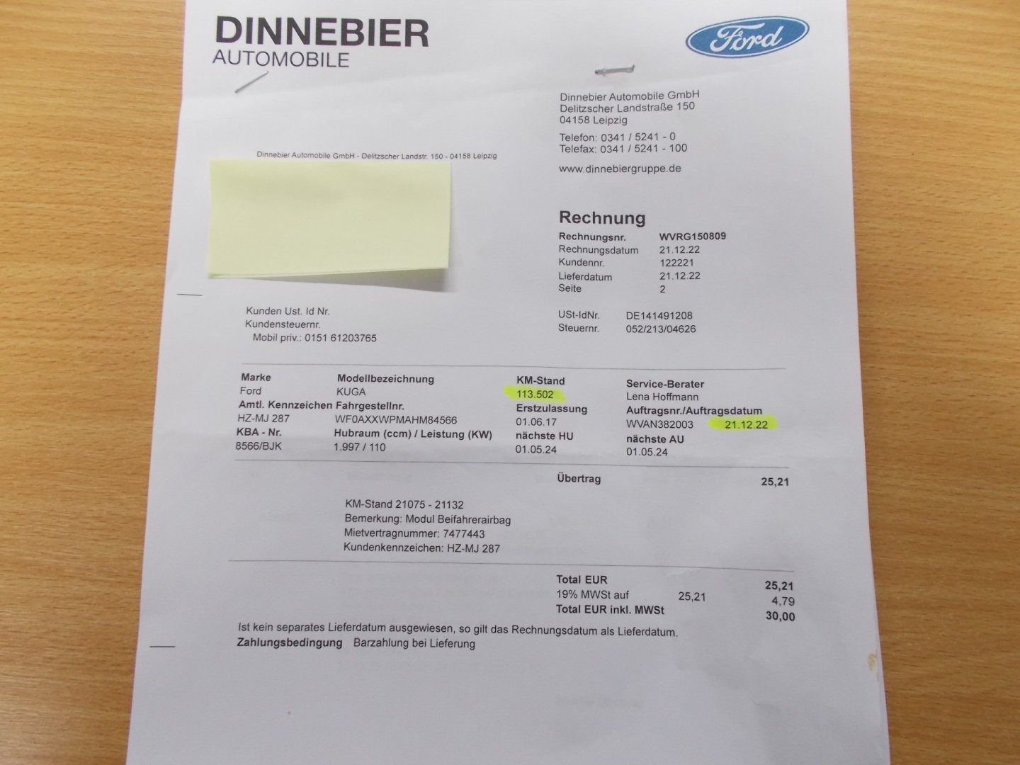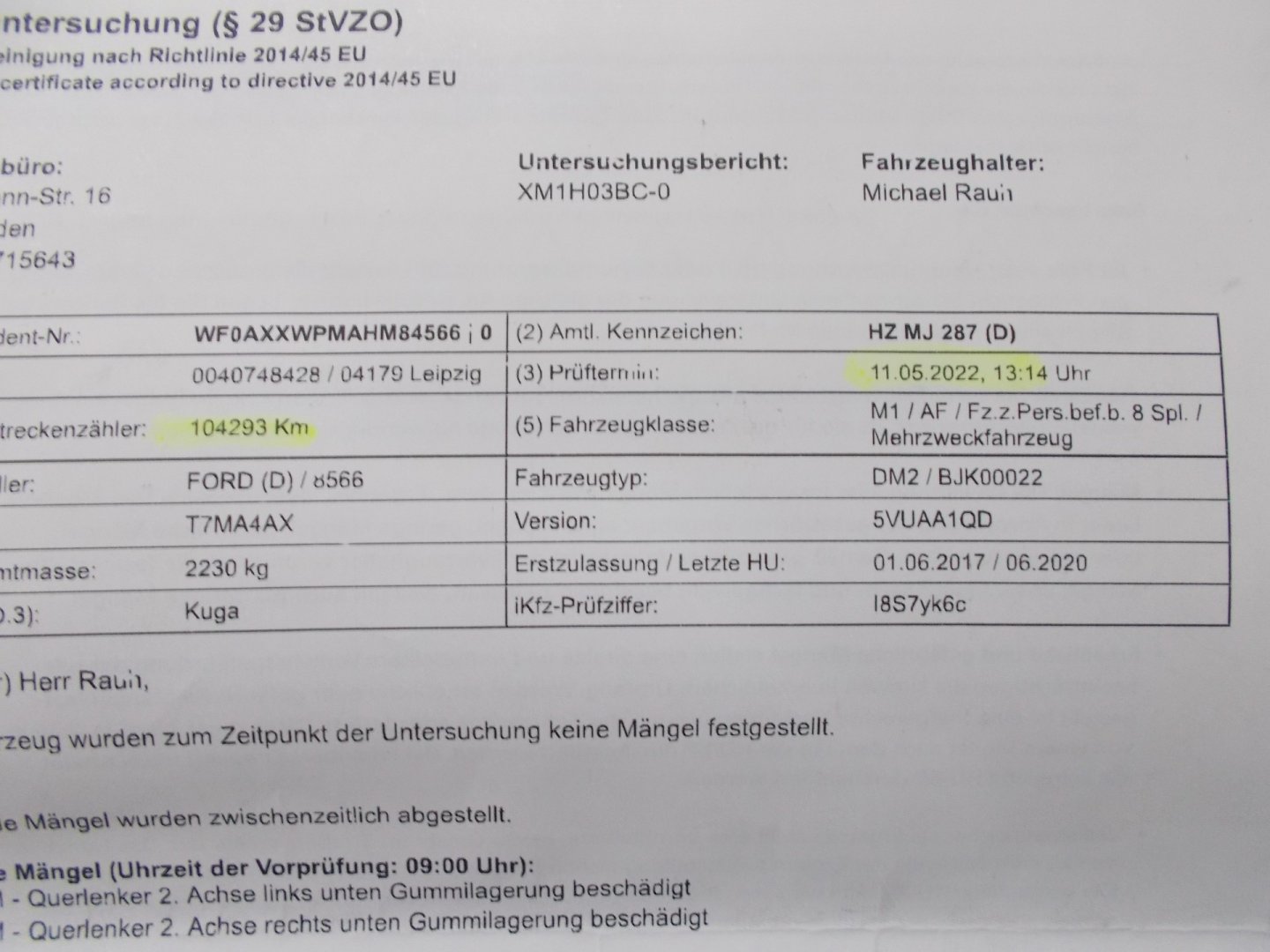Nehavarované, Servisní knížka