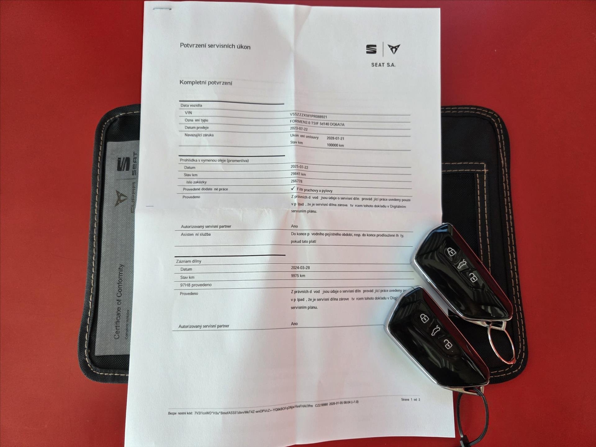 První majitel; Vozidlo je po ukončeném operativním leasingu VWFS (ŠkoFIN) a je ve špickovém stavu; NEHAVAROVÁNO a NELAKOVÁNO. Pravidelný autorizovaný servis CUPRA. Pouze jeden majitel. Poslední servis 29.841 km 22/07/2025. Vůz je v TOVÁRNÍ ZÁRUCE do 21/07/2028 nebo 100.000 km. K prohlídce poskytneme prostory našeho autoservisu se zvedákem; diagnostiku; měřák tlouštky laku. Můžete si vůz nechat prohlédnout vlastním automechanikem nebo autoservisem. Zákonné a havarijní pojištění Vám sjednáme na místě při koupi vozu. V případě financování sleva až 20.000 Kč.