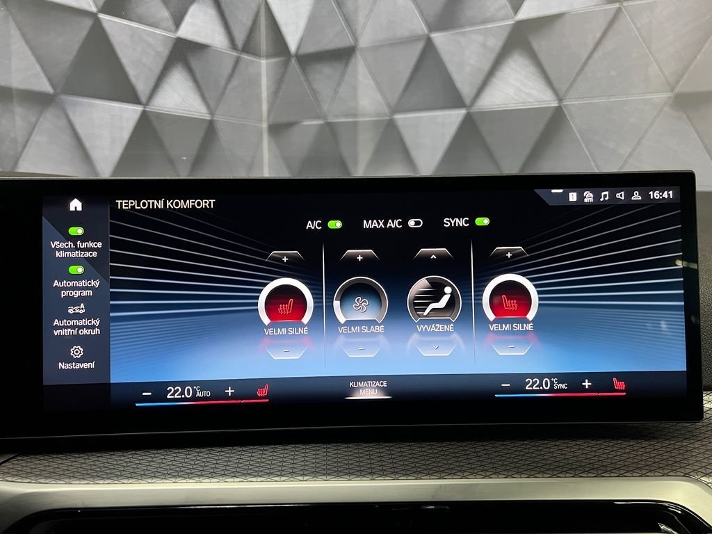 | Vnitřní výbava a komfort | Bezklíčkové ovládání, El. sklopná zrcátka, Vyhřívaná zrcátka, Klimatizace třízónová, Klimatizace aut. , Deaktivace airbagu spolujezdce, Klimatizovaná přihrádka, Multifunkční volant, Senzor tlaku v pneumatikách, Senzor opotřebení brzd. destiček, Senzor stěračů, El. přední okna |