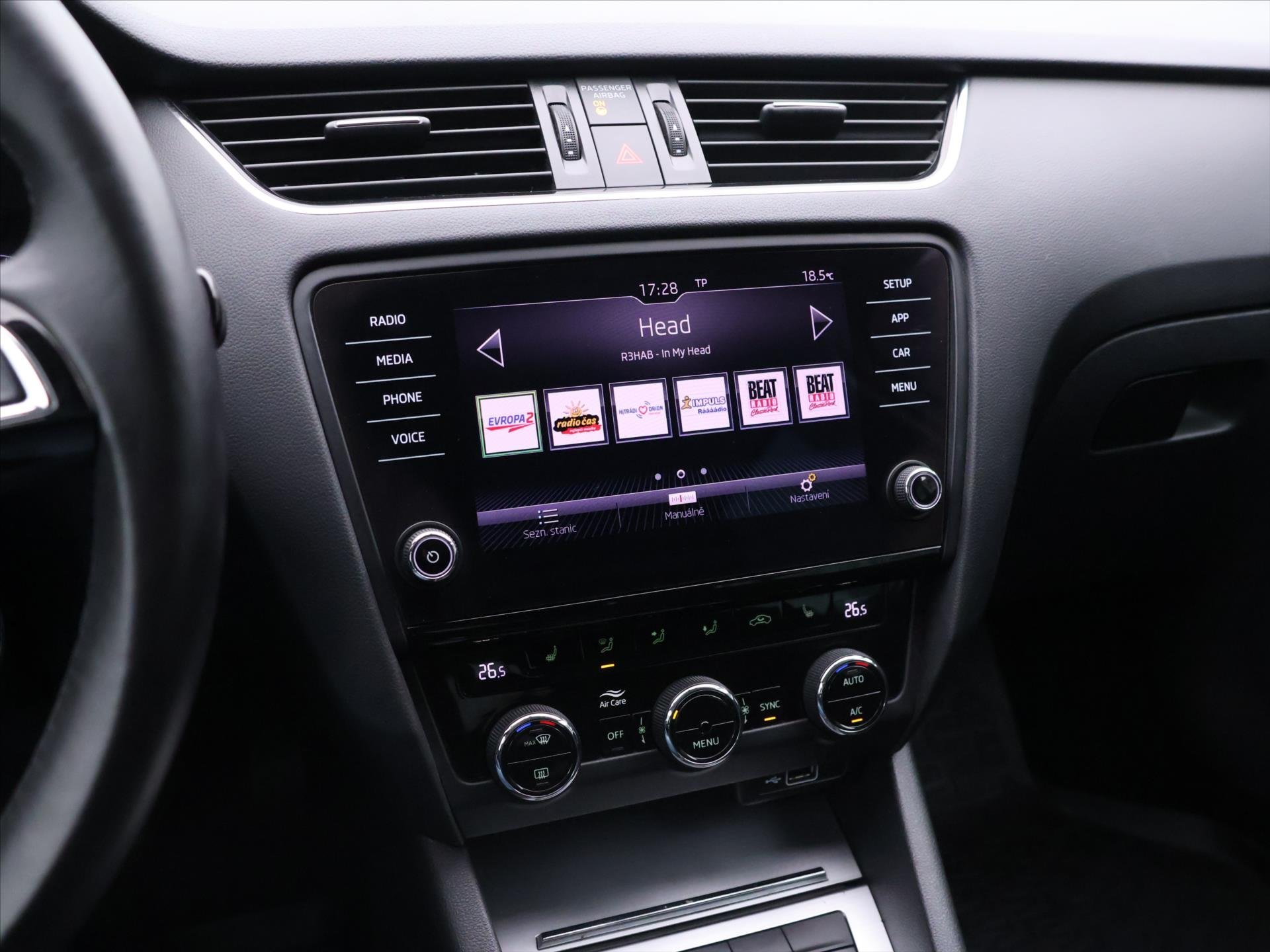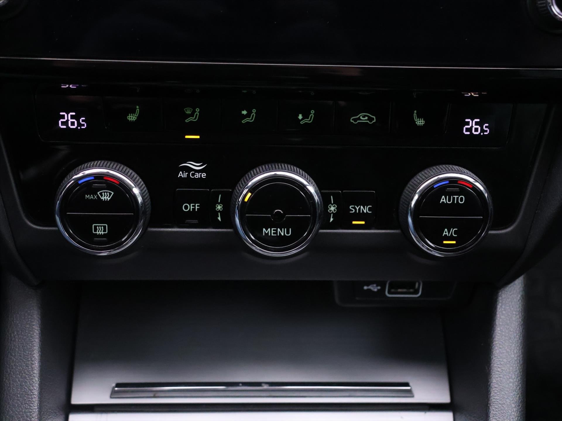 | Vnitřní výbava a komfort | Klimatizace aut. , Klimatizace dvouzónová, Klimatizovaná přihrádka, Senzor tlaku v pneumatikách, Bezklíčkové ovládání, Deaktivace airbagu spolujezdce, Multifunkční volant, Nastavitelný volant, Vyhřívaná zrcátka, El. sklopná zrcátka, Posilovač řízení, Venkovní teploměr, Zadní loketní opěrka |