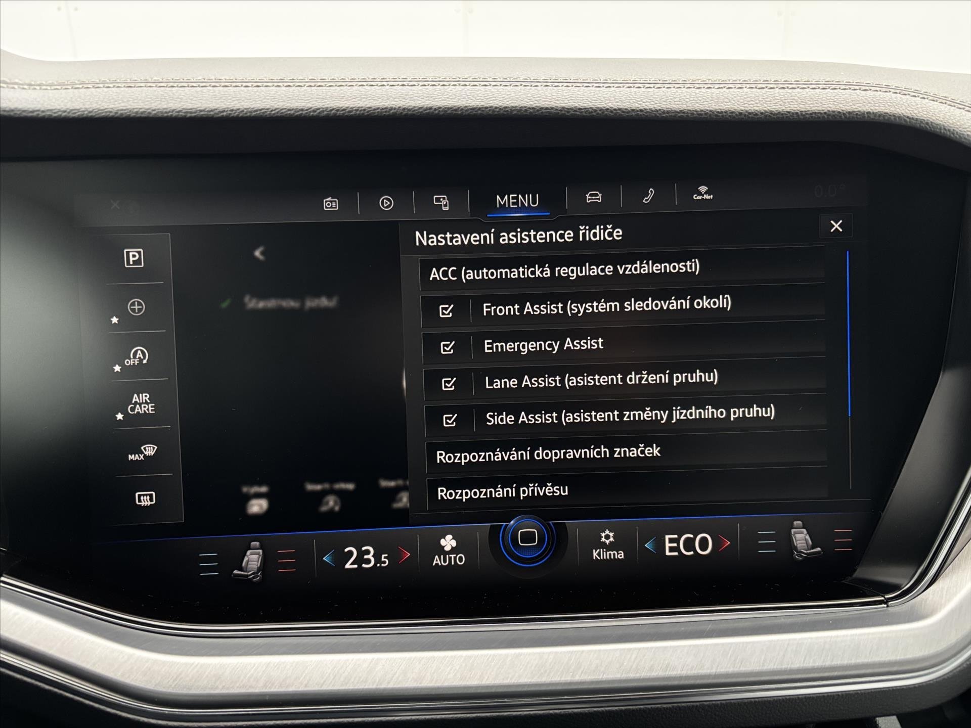 Asistenční systémy Adaptivní tempomat, Asistent pro vedení vozu v jízdních pruzích, Asistent pro jízdu v koloně, Asistent změny jízdního pruhu, Parkovací asistent, Parkovací kamera, Parkovací senzory přední, Parkovací senzory zadní, Asistent při jízdě ze svahu, Tempomat