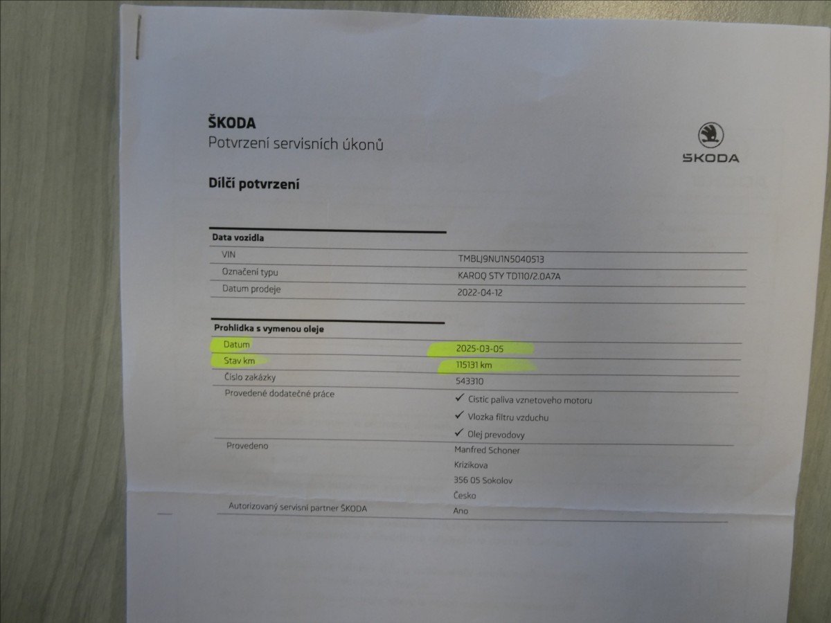 - Servisní knížka
