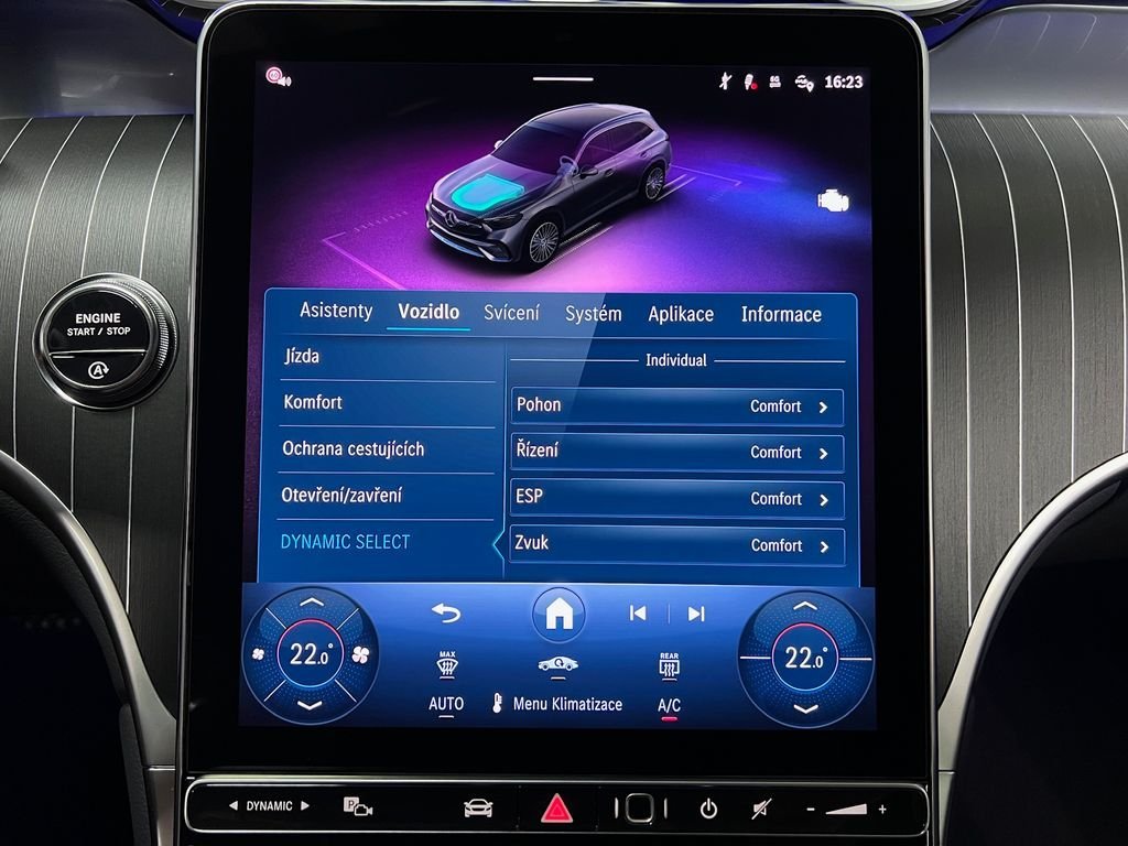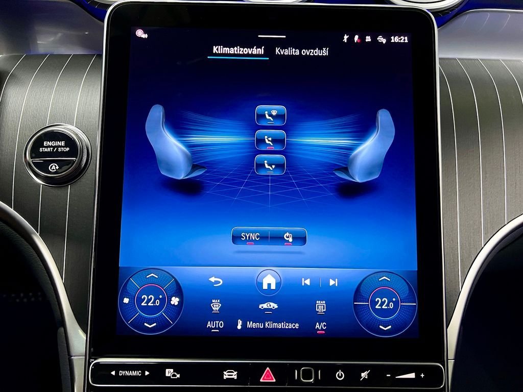 | Vnitřní výbava a komfort | Bezklíčkové ovládání, El. sklopná zrcátka, Vyhřívaná zrcátka, Klimatizace dvouzónová, Deaktivace airbagu spolujezdce, Klimatizovaná přihrádka, Multifunkční volant, Senzor tlaku v pneumatikách, Senzor opotřebení brzd. destiček, Senzor stěračů, El. přední okna, Vyhřívaný volant |