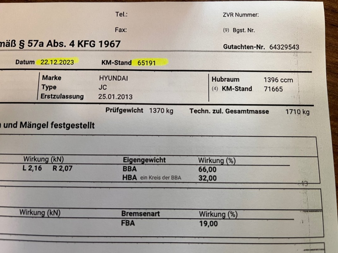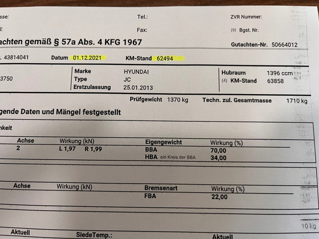 Parametry vozidla
