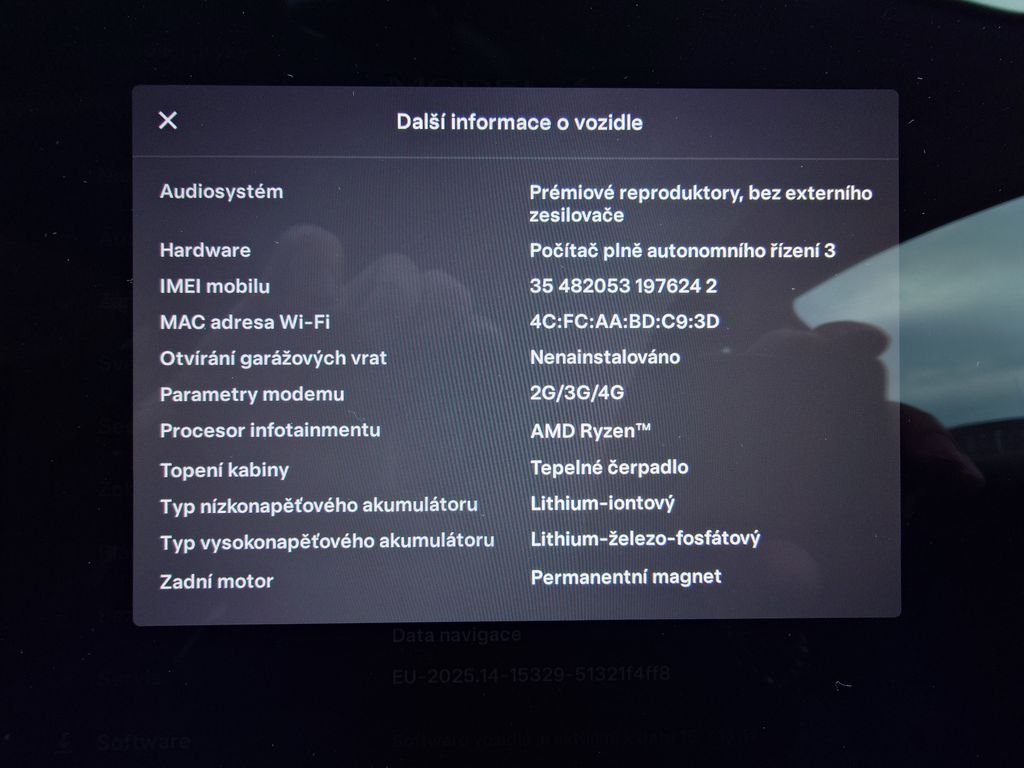 Parametry vozidla