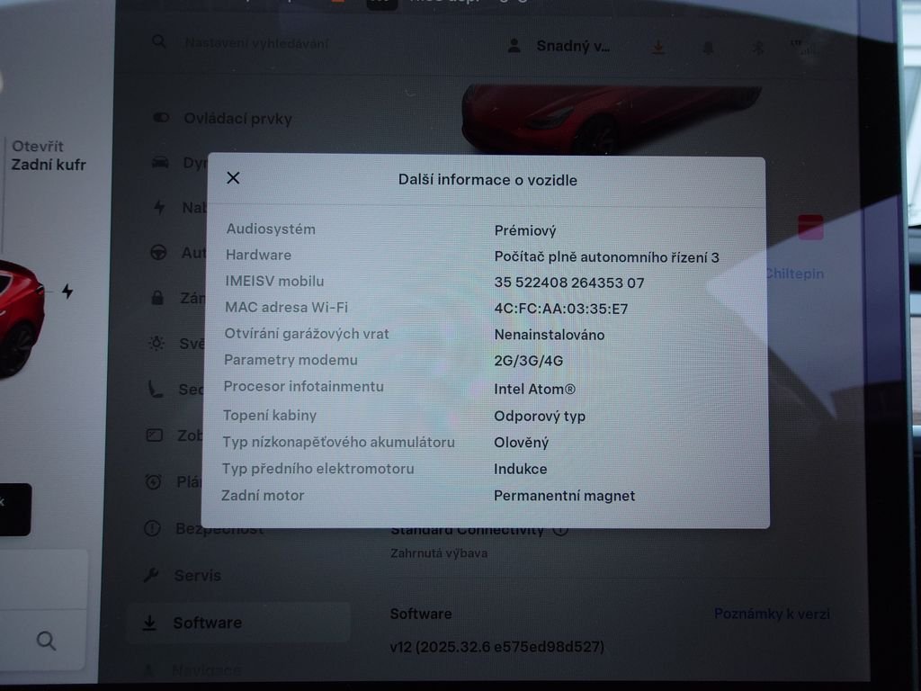 Parametry vozidla
