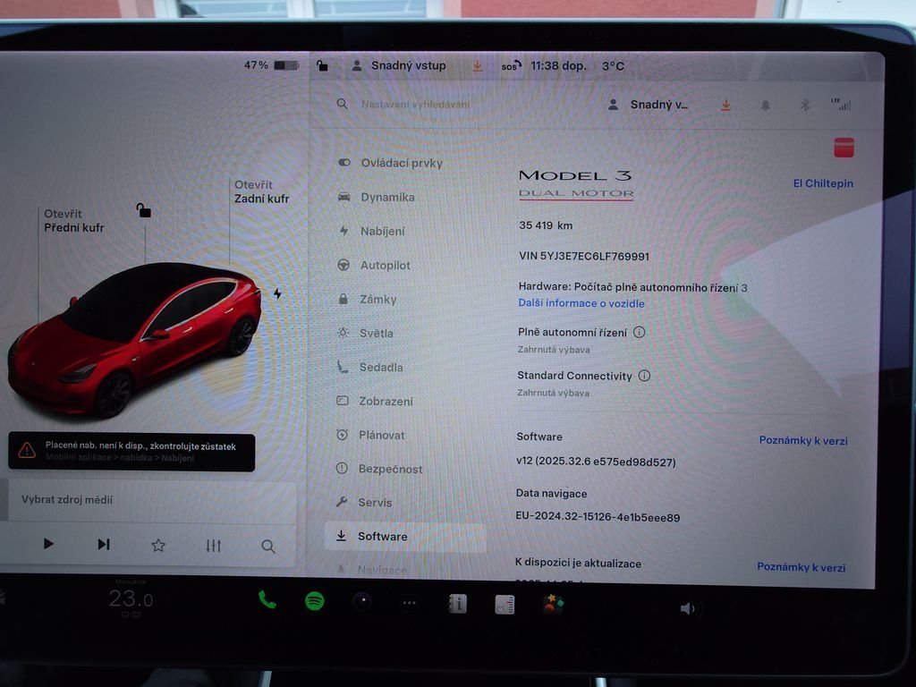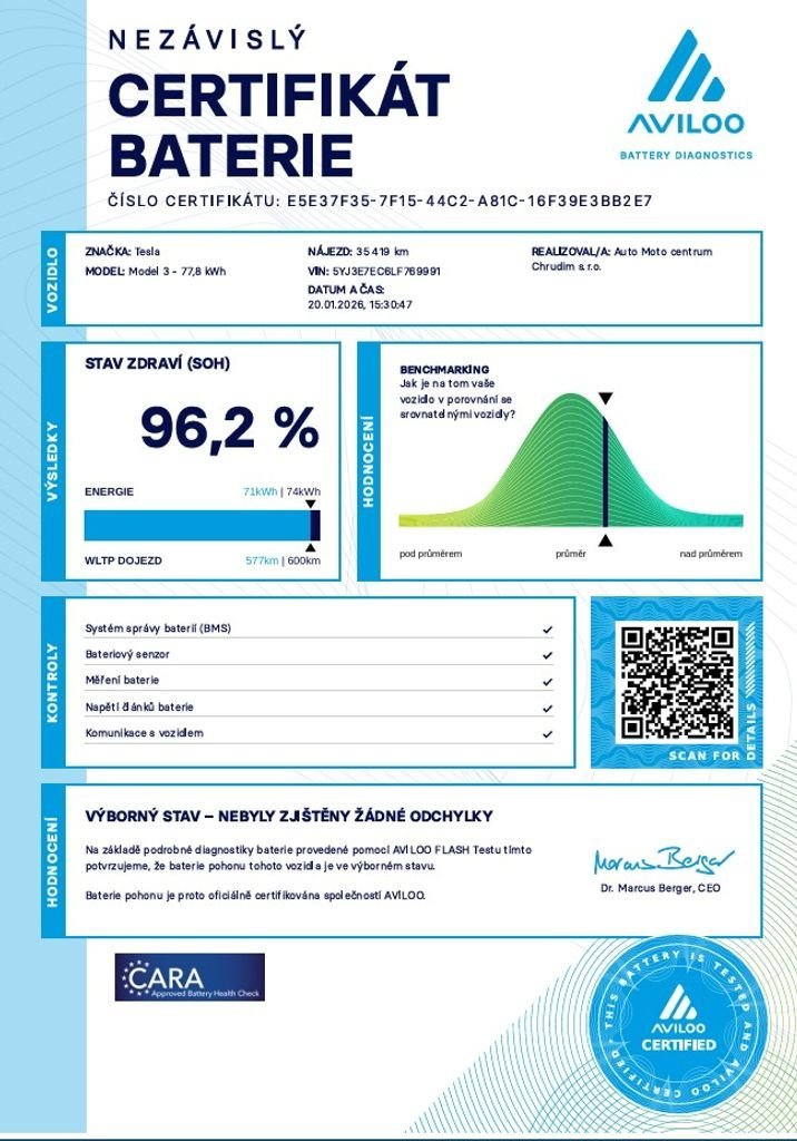 Tesla Model 3 Performance - FSD 377 kW SOH 96; 2% (ODPOČET DPH) - cena uvedena vč. DPH; baterie 77; 8 kWh; dovoz: EU; VIN: 5YJ3E7EC6LF769991; elektro; do provozu: 16.9.2020; najeto: 35419 km; pohon kol: 4x4; automatická převodovka; STK do: 1/2028; WLTP 567 km; procesor INTEL ATOM; klimatizace; parkovací kamera; přední a zadní vyhřívaná sedadla; FSD - autopilot. Záruka na Akumulátor a hnací ústrojí 8 let nebo po ujetí 192.000 km (podle toho; co nastane dříve).*MOŽNOST VYKOUPENÍ VAŠEHO STARÉHO VOZU PROTIÚČTEM* *MOŽNOST VÝHODNÉHO FINANCOVÁNÍ už bez nulové akontace* Pro nezávaznou kalkulaci nás neváhejte kontaktovat. Nutno vždy volat předem! Prohlídky možné i mimo pracovní dobu tel. 732710796 Mates auto. Nejedná se o návrh na uzavření smlouvy (nabídku) dle § 1731 zákona č. 89/2012 Sb.; občanský zákoník; ale o nezávaznou nabídku.