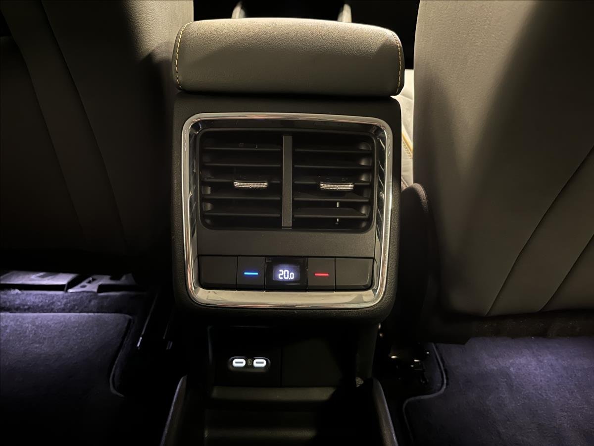 | Vnitřní výbava a komfort | Ambientní LED osvětlení interiéru, Klimatizace aut. , Bezklíčkové ovládání, Deaktivace airbagu spolujezdce, El. sklopná zrcátka, Kožené čalounění, Multifunkční volant, Nastavitelný volant, Posilovač řízení, Roletky na zadní okna, Senzor stěračů, Senzor tlaku v pneumatikách, Klimatizace třízónová, Venkovní teploměr, Vyhřívaná zrcátka, Vyhřívané čelní sklo, Vyhřívané trysky ostřikovačů skla, Vyhřívaný volant, Zadní loketní opěrka |