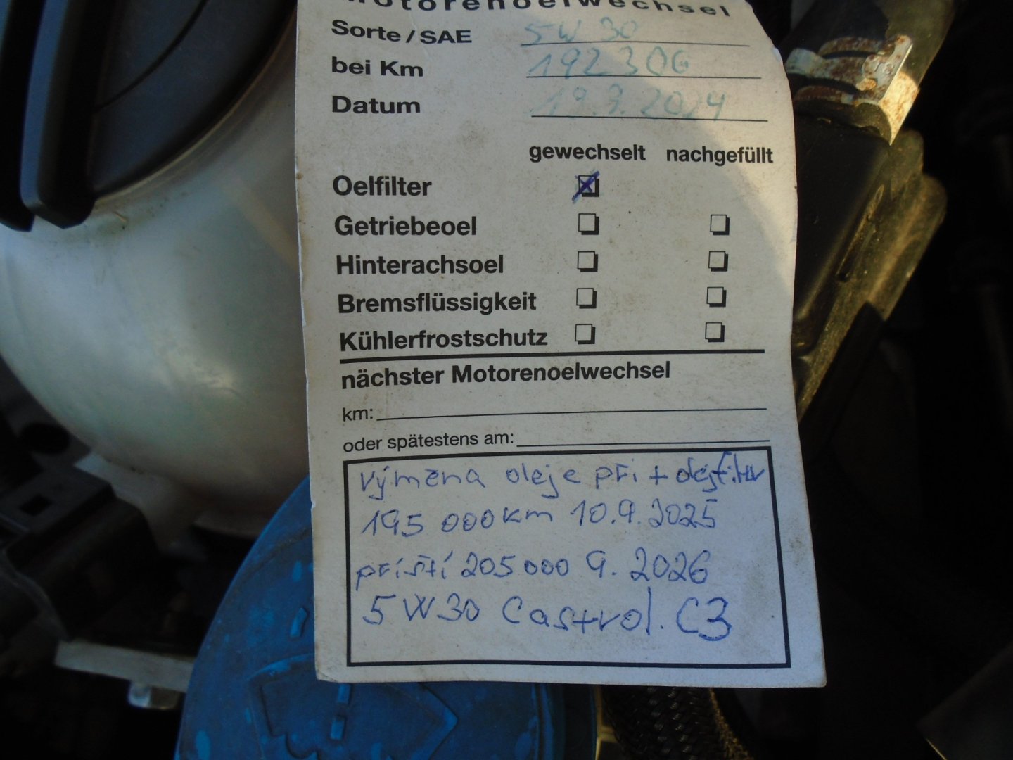 SERVIS - Rozvody včetně vodní pumpy a řemen olejového čerpadla, Olej 5W30 a filtry