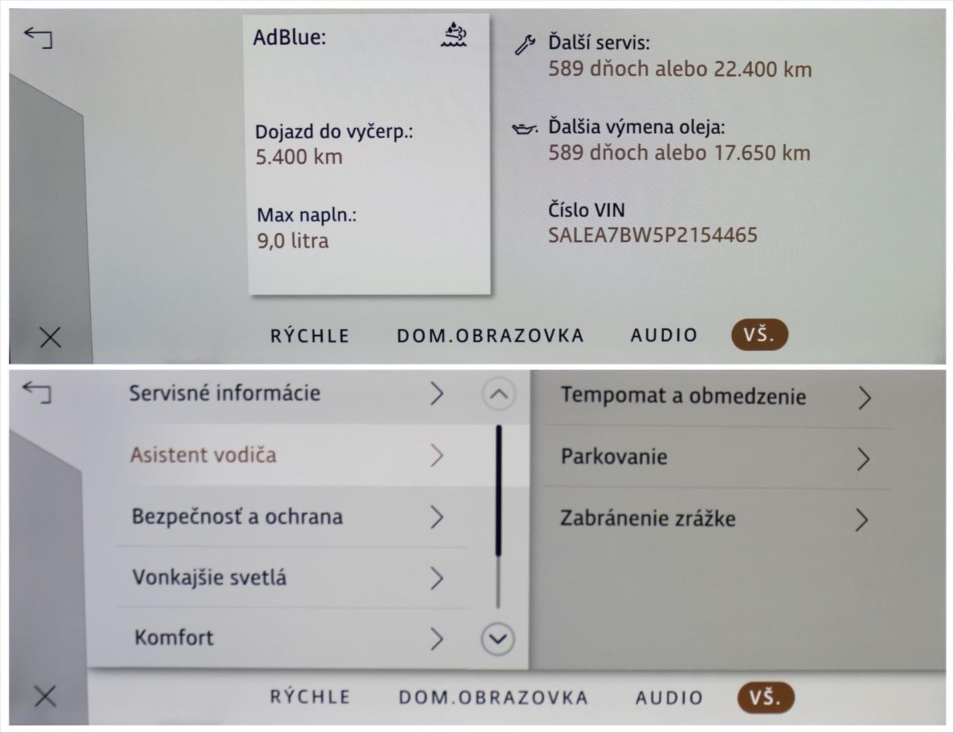 Parametry vozidla