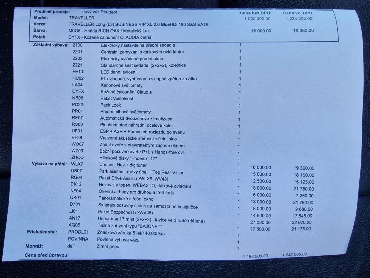 První majitel; Úvěr možný; Vozidlo původem z ČR; 1.Majitel; Servisní knížka; Pravidelný servis převážně v autorizovaném servisu Peugeot s intervalem 15.000km. Kompletně dohledatelná historie; Kompletní výpis Cebia; Vozidlo hezké zvenku i uvnitř. Bohatá výbava Business VIP včetně panoramatické střechy; tažného zařízení a nezávisleho topení.