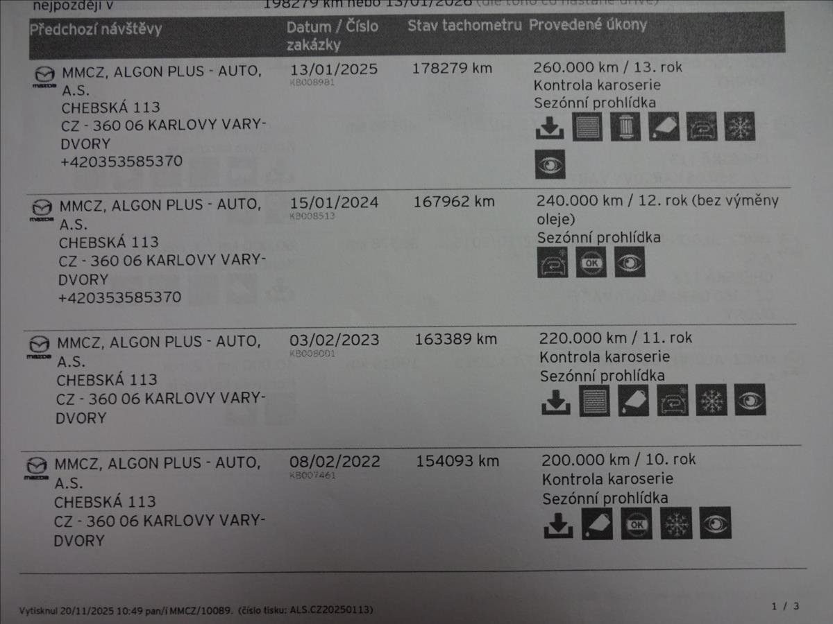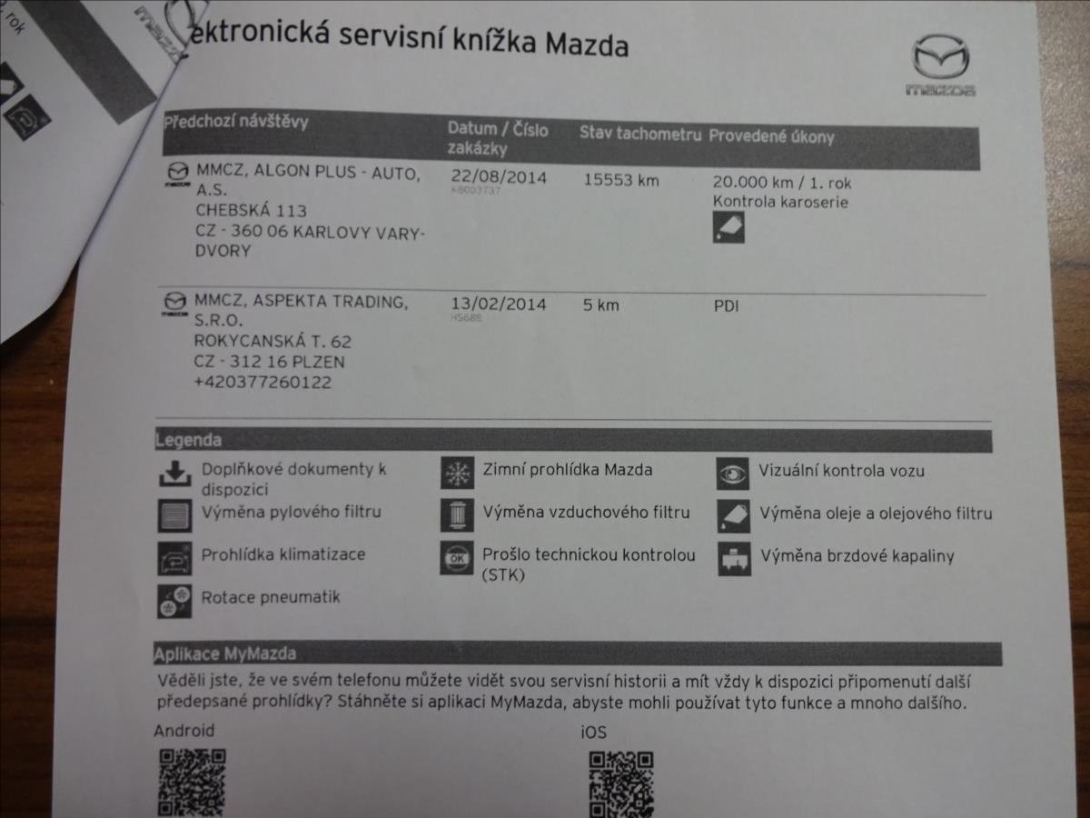 1.MAJITEL; KOUPENO NOVÉ V ČR; KOMPLETNĚ VEDENÁ SERVISNÍ KNIHA - AUTORIZOVANÝ SERVIS MAZDA; NOVÁ STK+ME 11/2027; VOZIDLO PO VÝMĚNĚ OLEJE + FILTRU; TAŽNÉ ZAŘÍZENÍ 1300KG